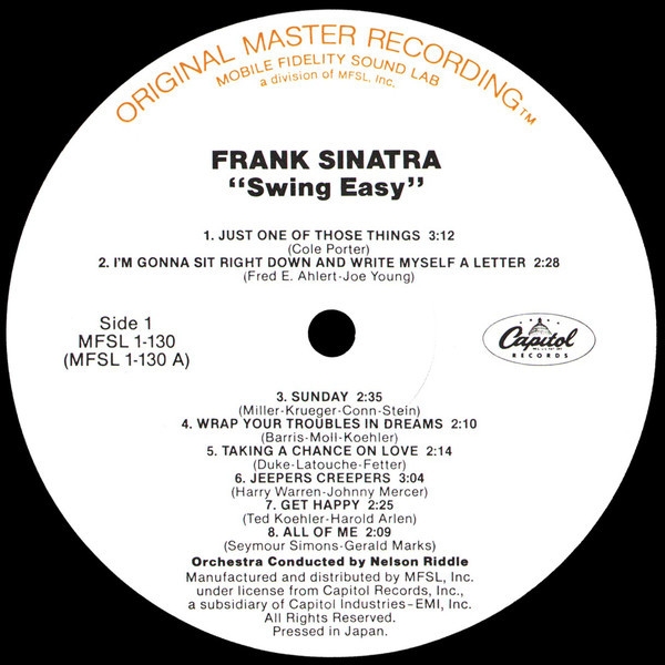 SINATRA, FRANK- BOX 16 LP AUDIOPHILE ALBUMS, LIMITED,NUMBERED-1983-FIRST PRESS USA-MOBILE FIDELITY-SC-1. A very rare audiophile box of 16 studio discs from the CAPITOL period from 1955 to 1962.