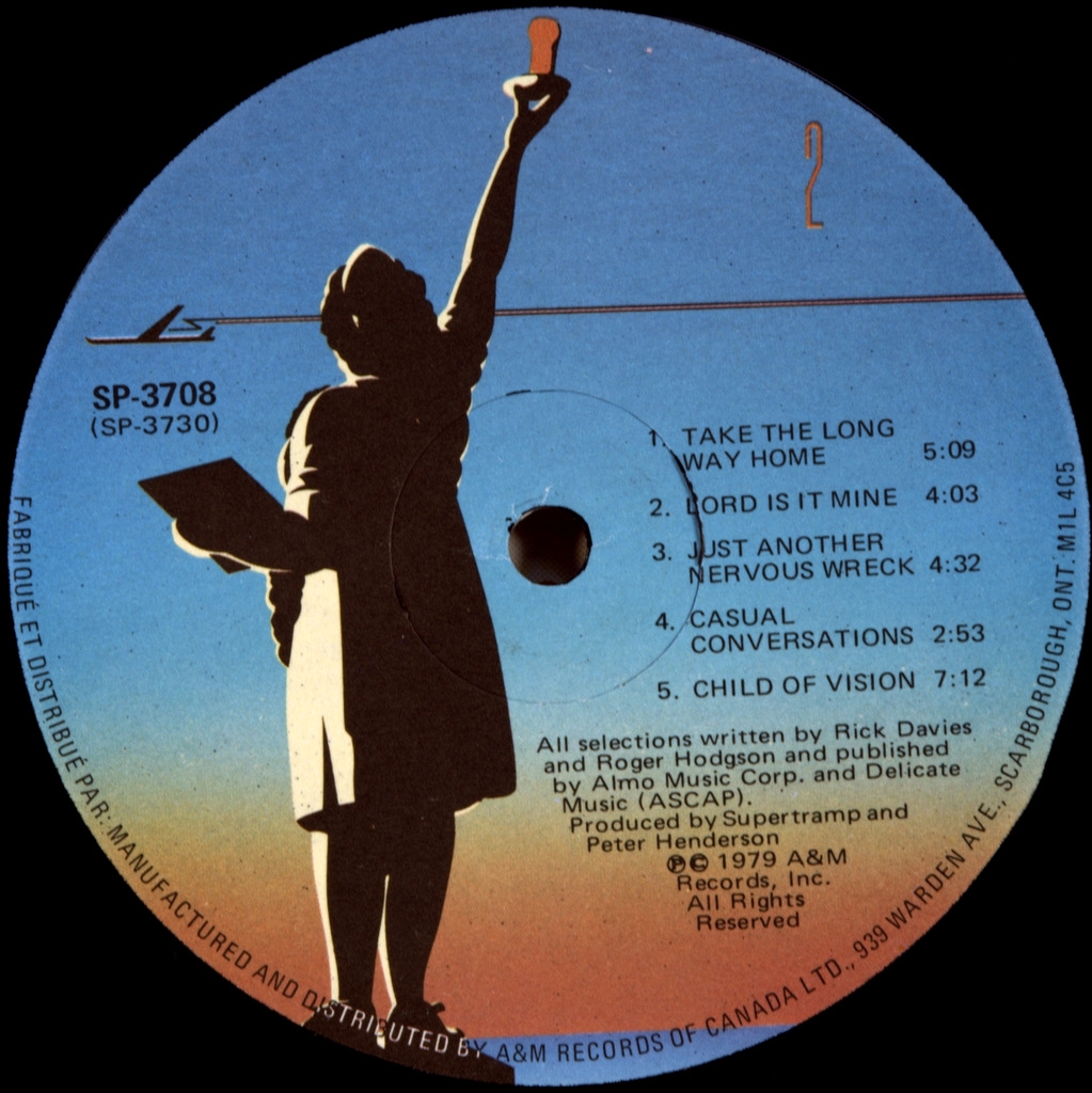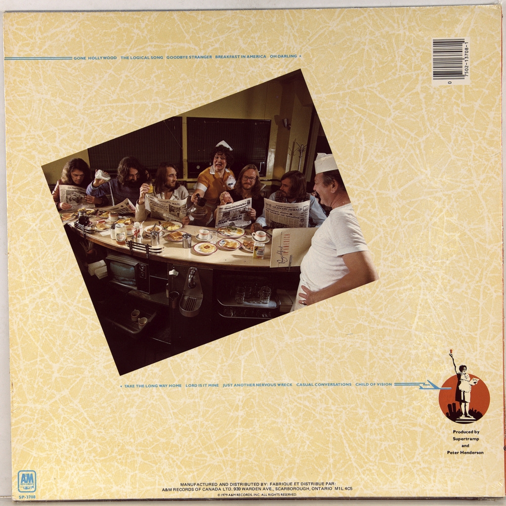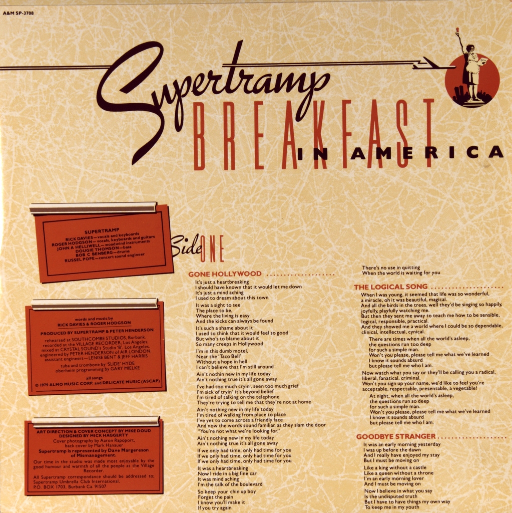 SUPERTRAMP-BREAKFAST IN AMERICA-1979-FIRST PRESS CANADA-AM -SP3708.A rare Canadian original. The album was recognized as the most successful by Supertramp — over 20 million copies were sold worldwide and the most successful English album in France. The CD includes four hit singles of the band: "The Logical Song", "Goodbye Stranger", "Take the Long Way Home".