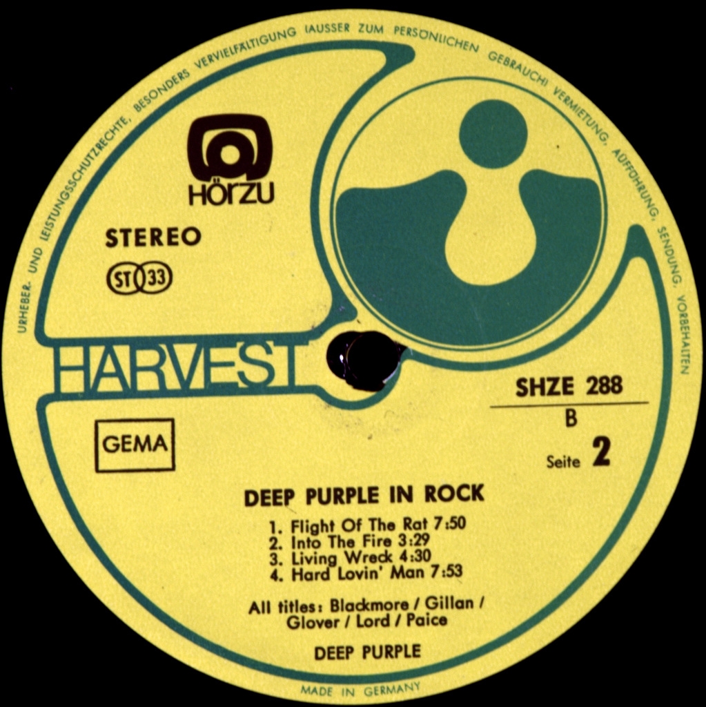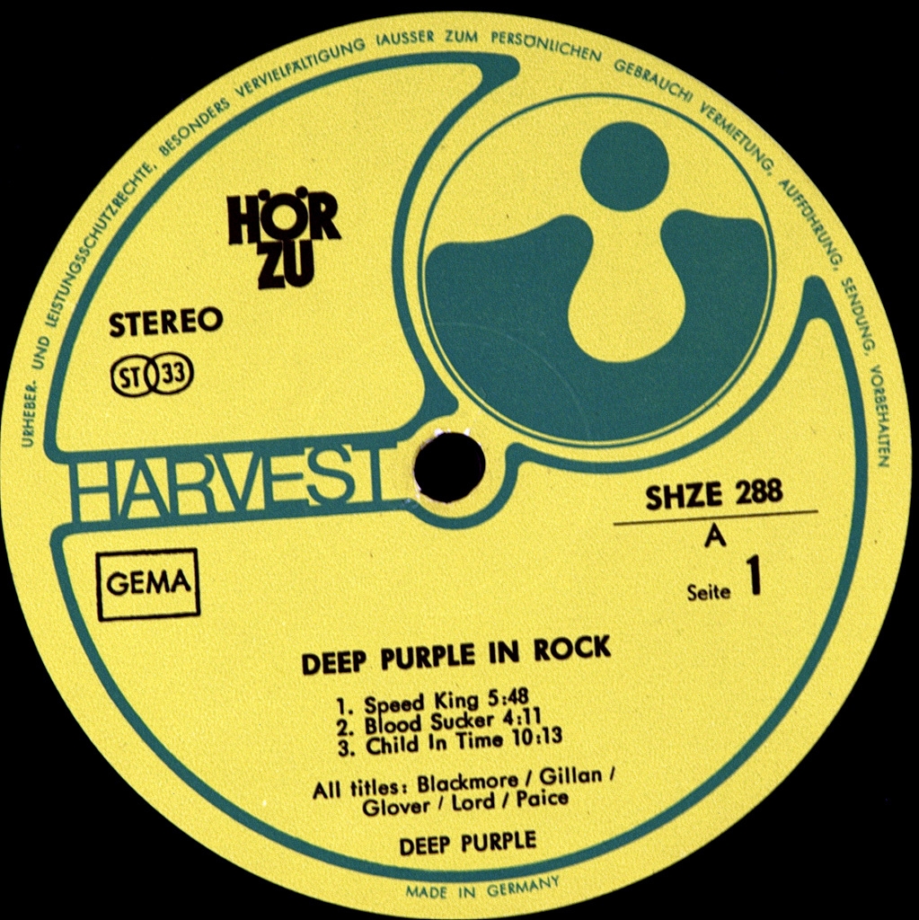 DEEP PURPLE-IN ROCK-1970-FIRST PRESS GERMANY-HARVEST -SHZE288. A rare German original with a modified cover. Deep Purple in Rock is the first studio album by the classic line-up of the band known as "Mark II". On this album, the band's style changed to hard and heavy.