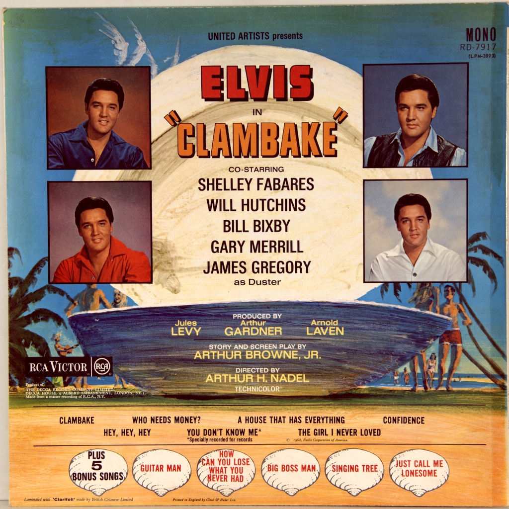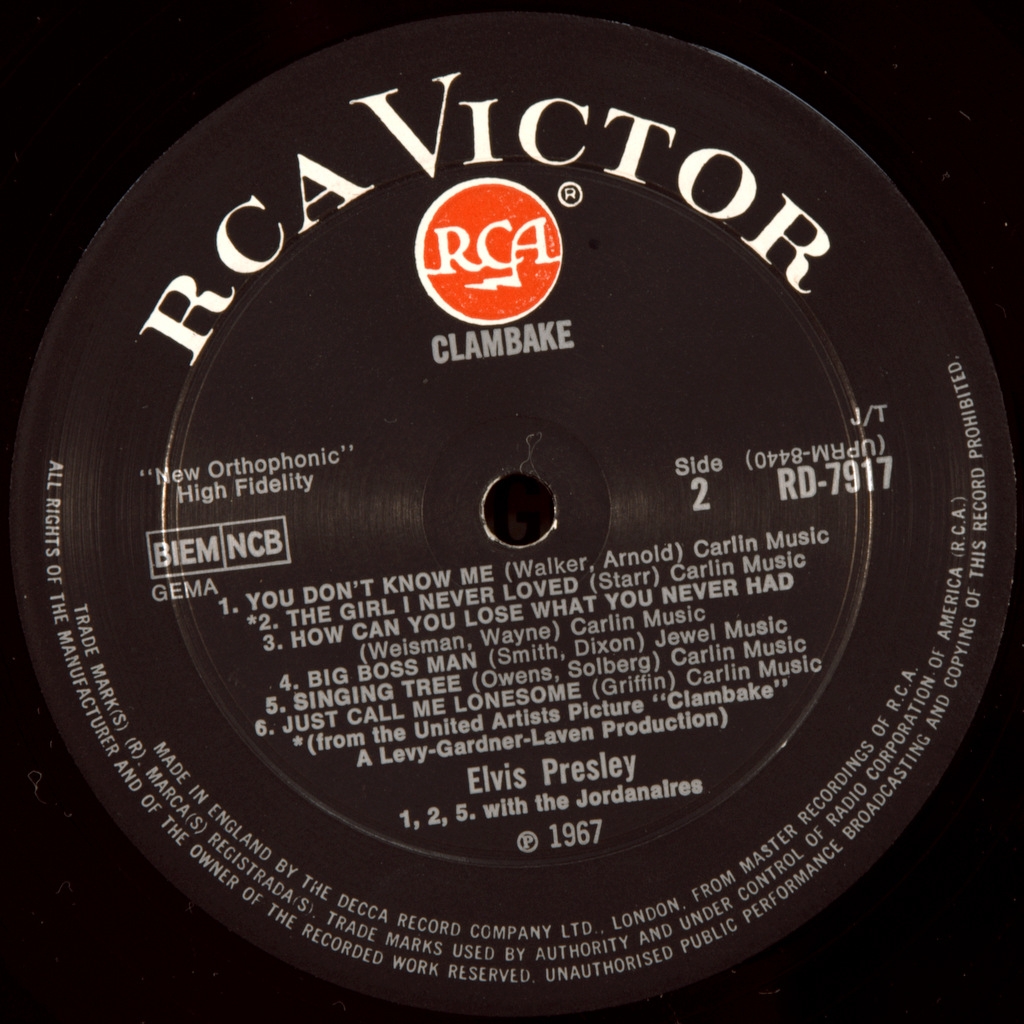 PRESLEY, ELVIS-CLAMBAKE-1967-THE FIRST PRESS (MONO) UK-RCA-RD-7917. A rare British original of the King of rock and roll. Clambake is the sixteenth soundtrack album by American singer and musician Elvis Presley, released by RCA Victor in mono and stereo, LPM/LSP 3893, in October 1967. This is the soundtrack to the 1967 film of the same name starring Presley. He entered RCA Studio B in Nashville, Tennessee on February 21, 1967 for recording sessions for his twenty-fifth film. Additional sessions of materials were held on September 10 and 11, 1967. It peaked at number 40 on the Billboard 200.