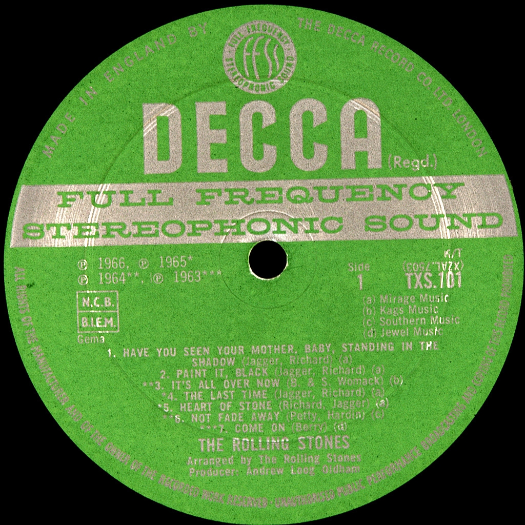 ROLLING STONES-BIG HITS (HIGH TIDE AND GREEN GRASS)-1966-FIRST PRESS (STEREO) UK-DECCA-TXS101. Matrices XZAL-7503-4W, XZAL-7504-3W. A very rare British original of the iconic ROLLING STONES album. Big Hits (High Tide and Green Grass) is the first compilation album by The Rolling Stones. With various covers and track listings, it was released on March 28, 1966 on London Records in the US and on November 4, 1966 on Decca Records in the UK. The American edition focused on songs from 1964 and 1965 with two new tunes: the recent "19th Nervous Breakdown" and the re-recorded "Time Is on My Side" with a guitar intro. The British version covered a longer period, starting with the band's first A-side single in 1963, "Come On", and ending with several songs from 1966, including the recent hit "Have You Seen Your Mother, Baby, Standing in the Shadow?" The album reached number three on the US Billboard 200 chart.[1] and the fourth place in the UK albums chart.[2] It remained on the chart for 99 weeks in the US, where the RIAA certified the album as double platinum, which meant more than two million copies sold.