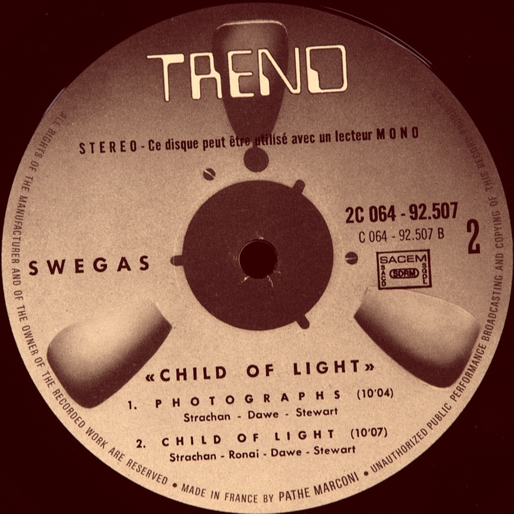 SWEGAS-CHILD OF LIGHT -1971-THE FIRST PRESS OF FRANCE-TREND-2C-06492507. A very rare French original of the iconic British band. An English band that began its creative activity in 1969. Having signed a contract with BC Records, they recorded their self-titled debut album at Advision Studios in London. However, the album was not released. The band started rehearsals on new material in the premises of the London ambulance. They then made a three-month tour of Europe, starting in Oslo on May 20, 1970. After returning from the tour, the musicians recorded the album "Child Of Light" at Tangerine Studios, located in Dalston (East London). The album was released in a small edition on "Barry Class Record Company". The album received very high marks and is a must in the collection of progressive music of the first line.
