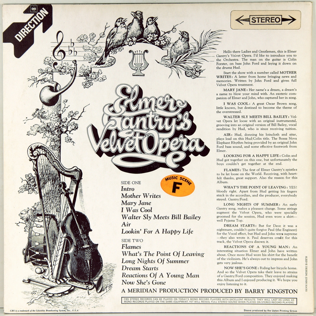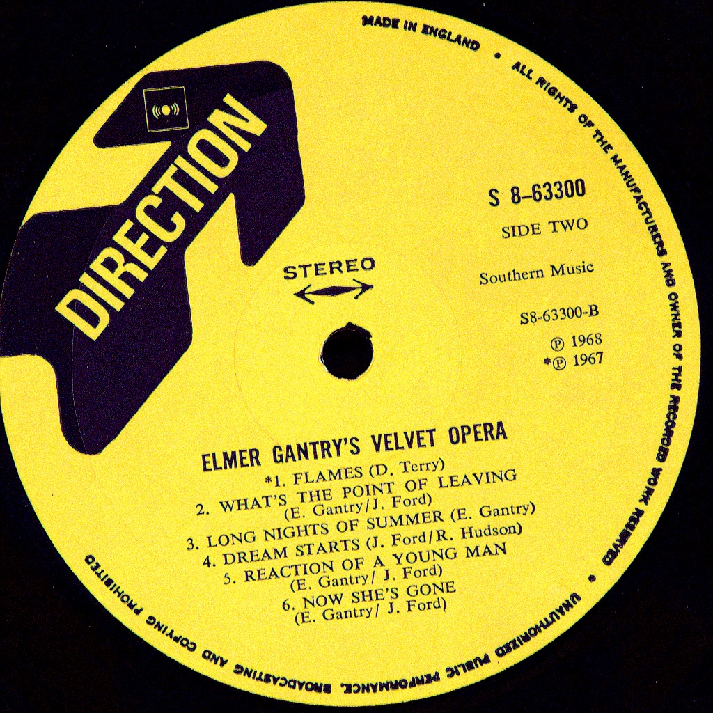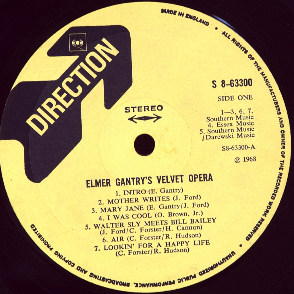ELMER GANTRY'S VELVET OPERA-SAME-1968-THE FIRST PRESS OF UK-DIRECTION-S8-63300. A very rare original of the cult album of the British psycho-prog band. Elmer Gantry's Velvet Opera, at various times also known as "Velvet Opera", was a British rock band that operated in the late 1960s. The band members, Richard Hudson, John Ford and Paul Brett, disbanded after two albums in 1970. Later they became members of The Strawbs, Hudson Ford and Stretch.