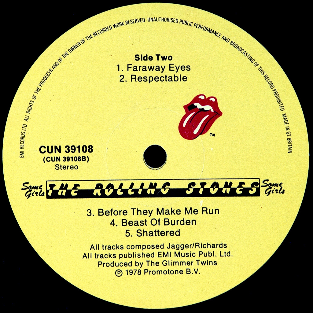 ROLLING STONES-SOME GIRLS-1978-FIRST PRESS UK-ROLLING STONES- CUN39108. A3U/B-3U matrices. A rare British original in the first color version of the cover. Some Girls is the fourteenth British and sixteenth American studio album by The Rolling Stones, released in 1978 on the band's own label. The longplay reached the top of the Billboard 200 chart and became one of the band's most successful albums in the United States, with over six million copies sold. The CD received rave reviews from the press, many reviewers called it the Rolling Stones' return to the roots and their best album since Exile on Main St.