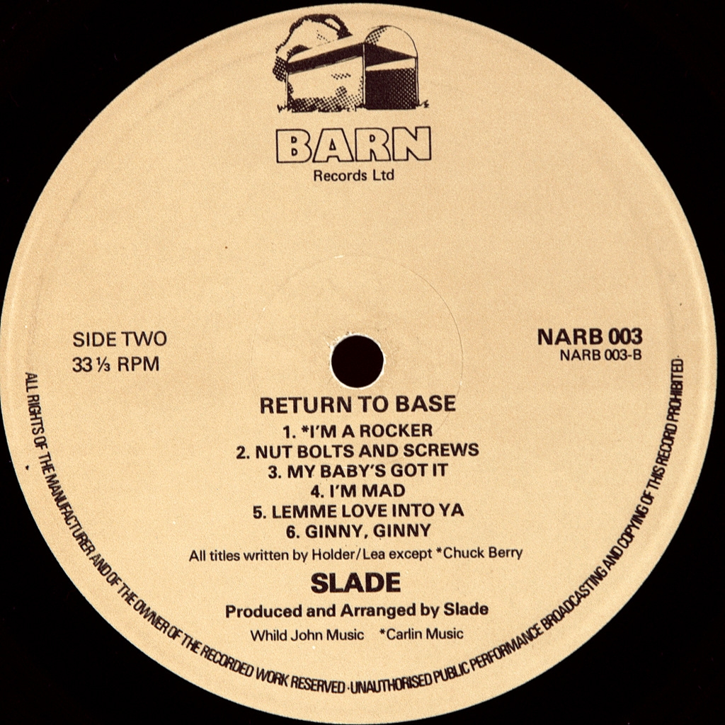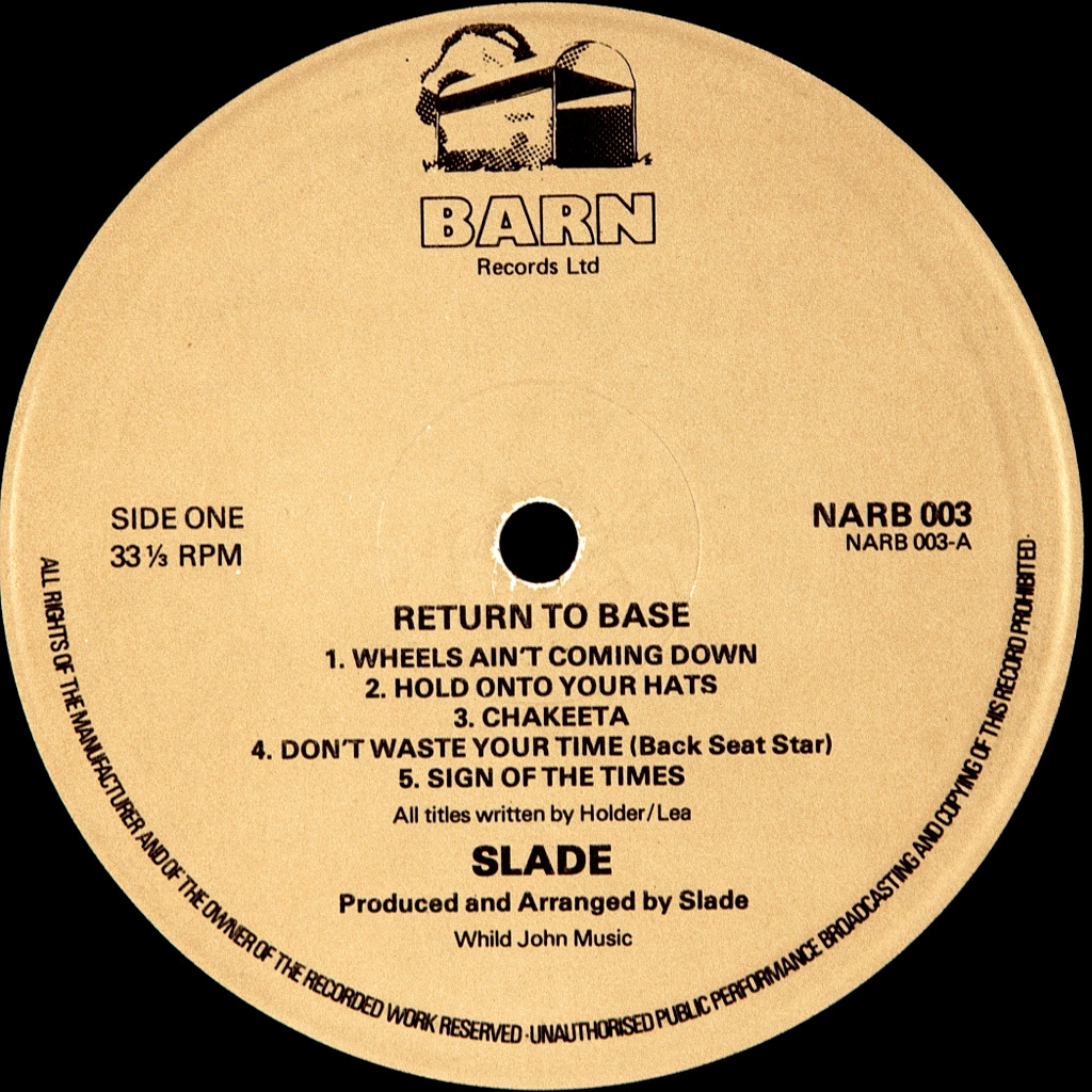 SLADE-RETURN TO BASE-1979-FIRST PRESS UK-BARN -NARB003. Mega rare British original. It is considered the rarest record in the discography of SLADE. Return to Base is the eighth studio album by the British rock band Slade. The album was released on October 1, 1979 by Barn Records. The album was a success in Belgium in 1980, reaching No. 1 on the Albums chart. Since the album was not available in Belgium, fans in the country initially had to buy the album as an import. The album soon rose to No. 1 on the Telemoustique chart, a weekly rock chart compiled by public vote. In Britain, the album failed.