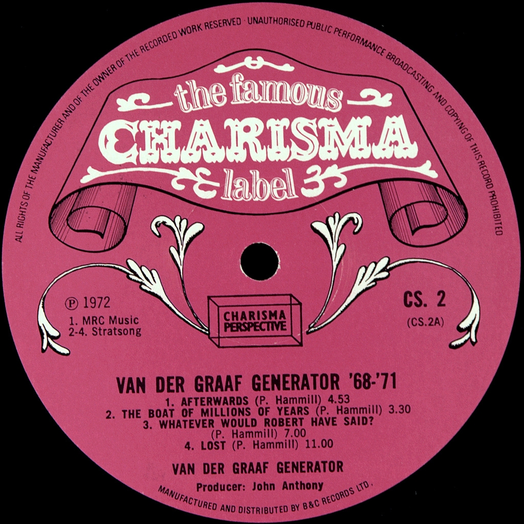 VAN DER GRAAF GENERATOR-68-71-1972- THE FIRST UK PRESS IS CHARISMA-CS-2. Matrices A-1U/B-1U Masterdisc -REYS. A rare British original of the best tracks from the first albums of the legendary band. The edition is valuable for collectors as it contains the track "NECROMANCER" previously unreleased.