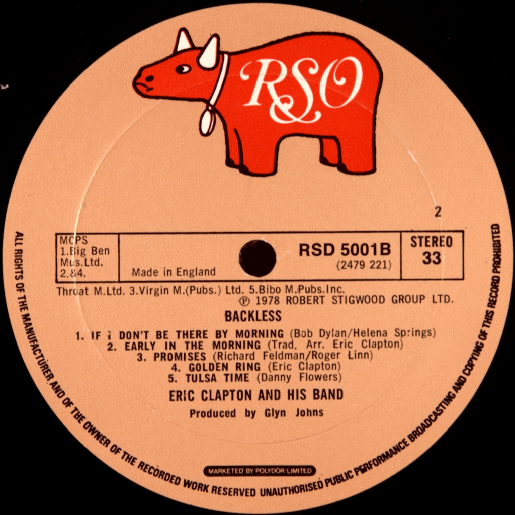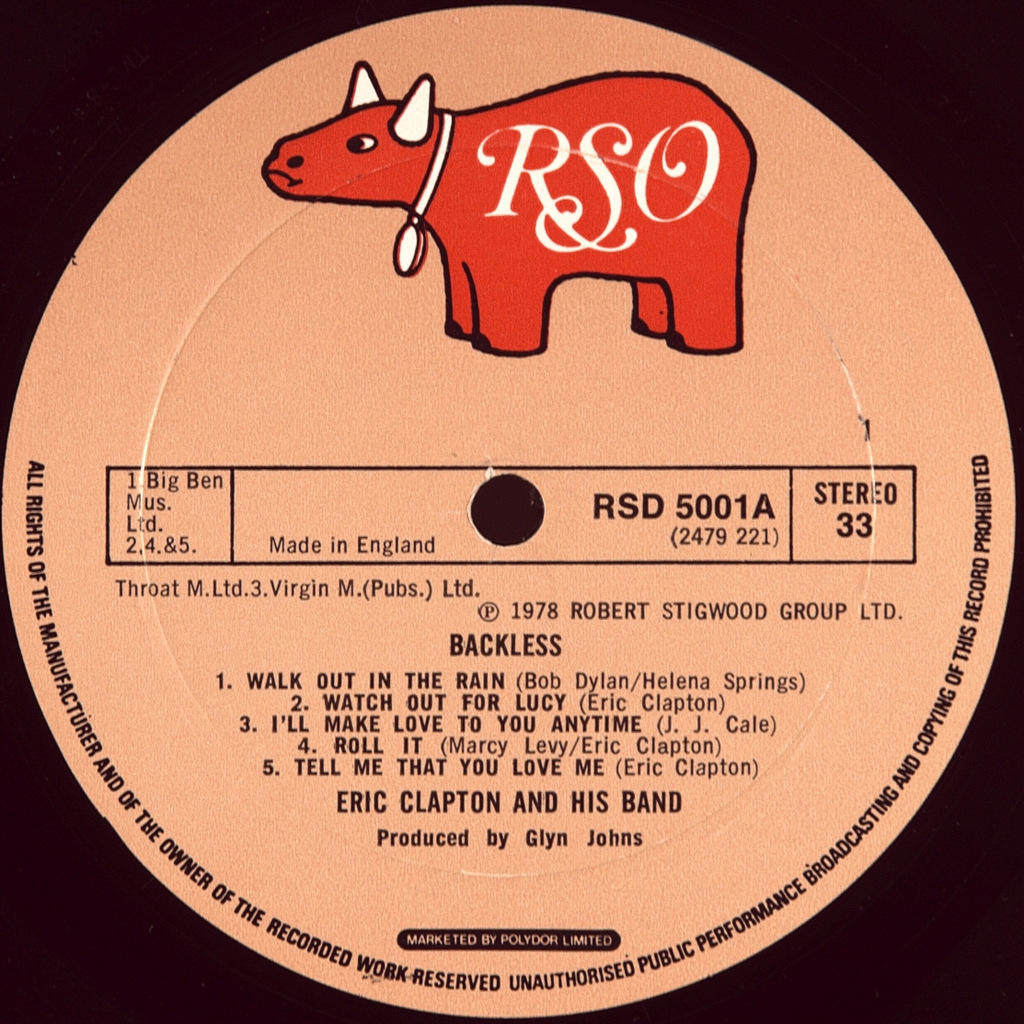 CLAPTON, ERIC-BACKLESS-1978-FIRST UK PRESS-RSO RSD5001 Rare album in the English edition. Backless is the sixth Studio album by Eric Clapton, released through Polydor Records in November 1978. Although Backless could not repeat the success of the album Slowhand, it was silver in UK and platinum in Canada and the United States, and also reached position 8 on the Billboard 200.