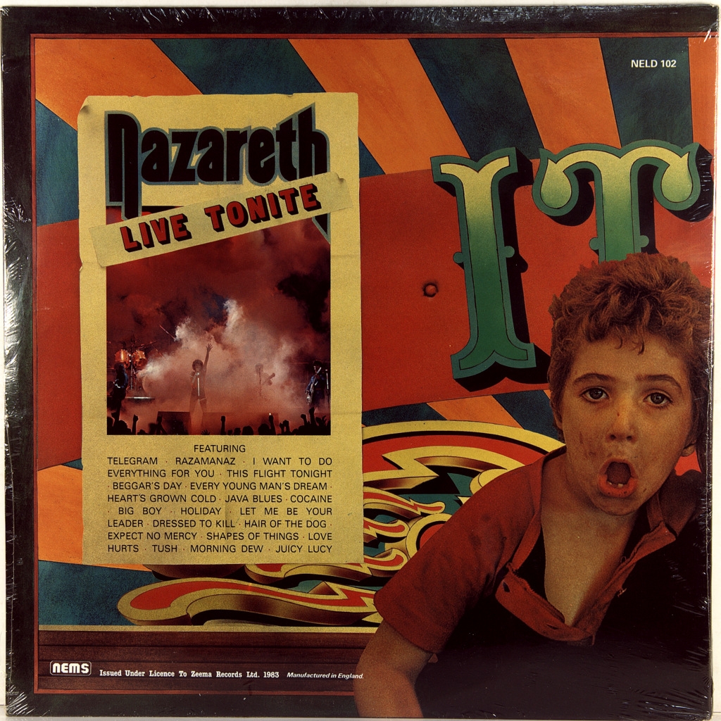 NAZARETH-SNAZ (2LP'S)-1981- THE FIRST UK- NEMS-NELD102 PRESS. A rare British original of the iconic live concert. The full name of the disc is It's Naz: only part of the inscription "'SNAZ" is depicted on the front side of the record, which many mistakenly indicate as the name of the album; there is an assumption (including due to the lack of a space) that this is a "provocation".The album is a recording of a concert at the Pacific Colisium in Vancouver in May 1981, held as part of a tour of North America. Several more concerts of that tour were recorded on tape, but this one, according to the band, was the best. In 2005, the album at number 430 was included in the list of the 500 greatest rock and metal albums of all time by Rock Hard magazine