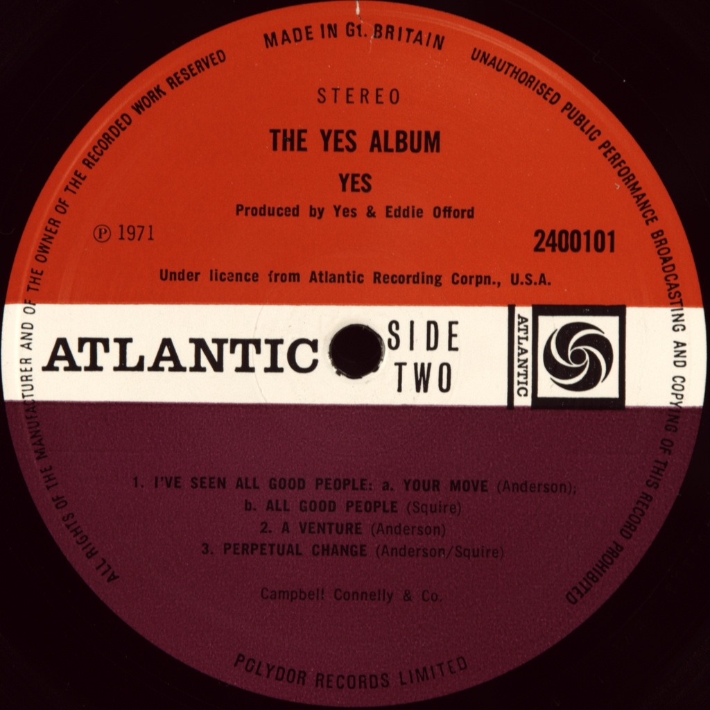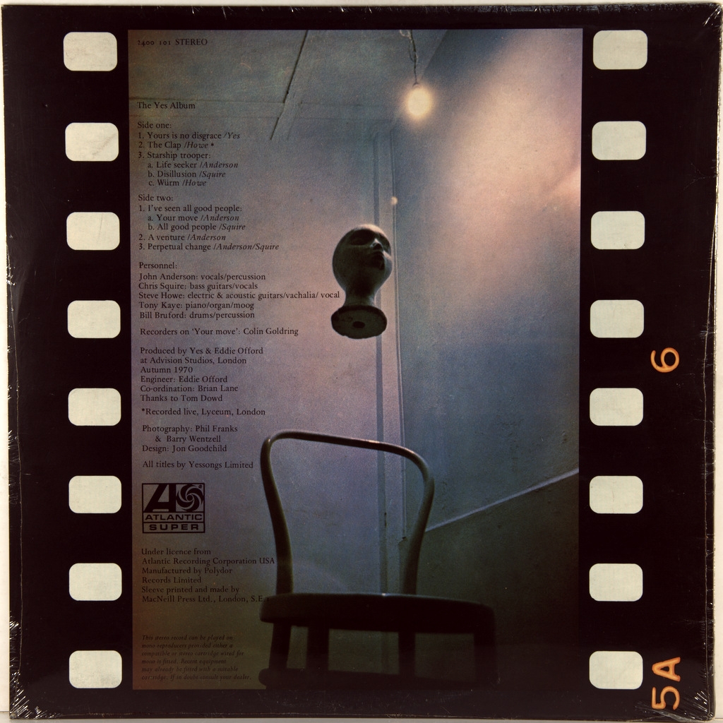 YES-YES ALBUM-1971-FIRST PRESS (PROMO)UK-ATLANTIC- 2400101. Matrices A-1// 1-1-1-3/ B-1//1-1-1-3 A rare British original of the cult album. Yes album is the third studio album by the English progressive rock band Yes, released on February 19, 1971 on Atlantic Records. It was the band's first album featuring guitarist Steve Howe, who replaced Peter Banks in 1970, as well as their last album featuring keyboardist Tony Kaye until the album 90125 in 1983.The album was a critical success and became a major commercial breakthrough for Yes, who risked being dropped by Atlantic due to the commercial failures of their first two albums. It reached number 4 in the United Kingdom and number 40 in the United States, and was later certified platinum by the Recording Industry Association of America with over a million copies.