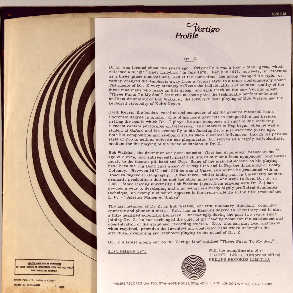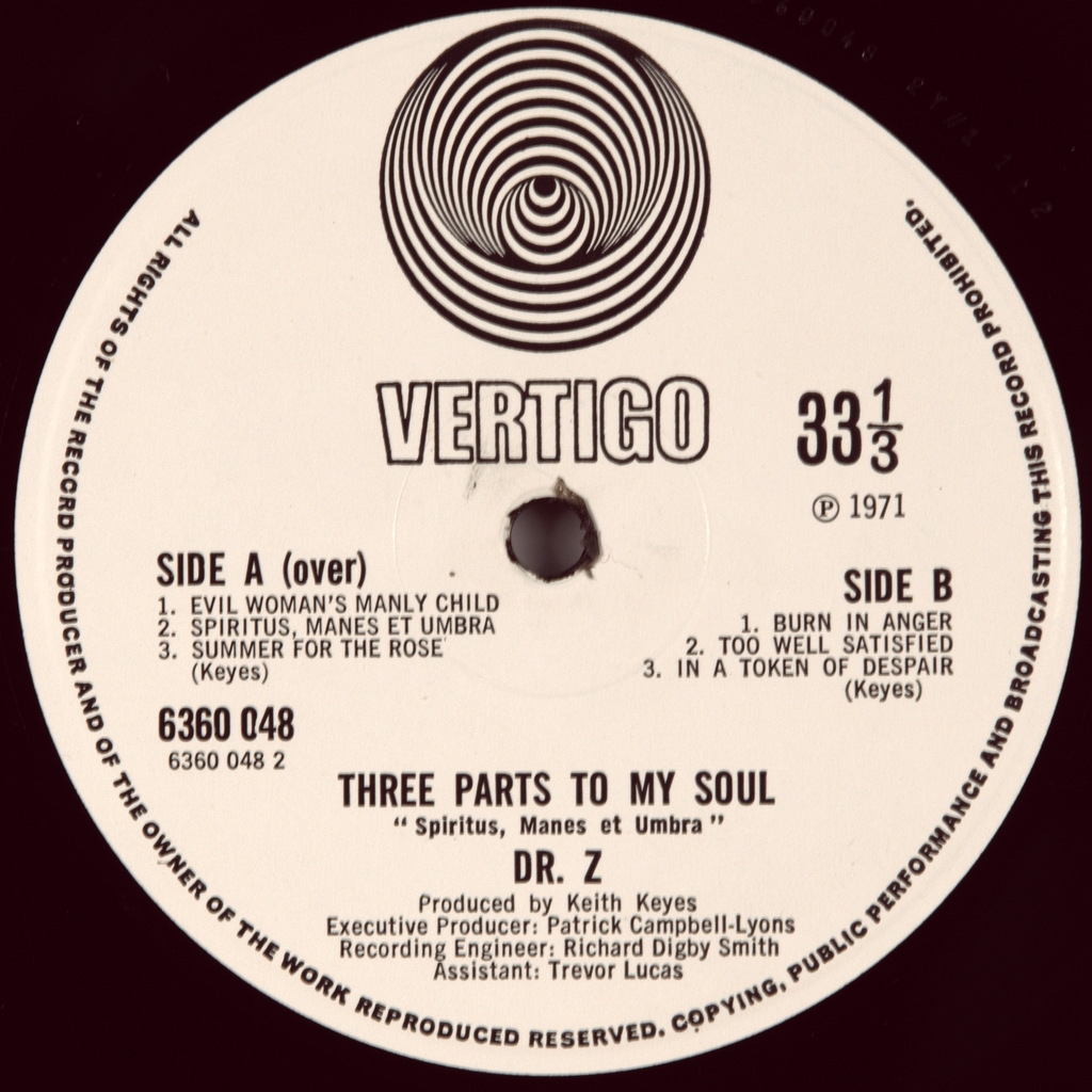 Dr. Z-THREE PARTS TO MY SOUL-1971-FIRST pressing-UK-VERTIGO - number 6360048