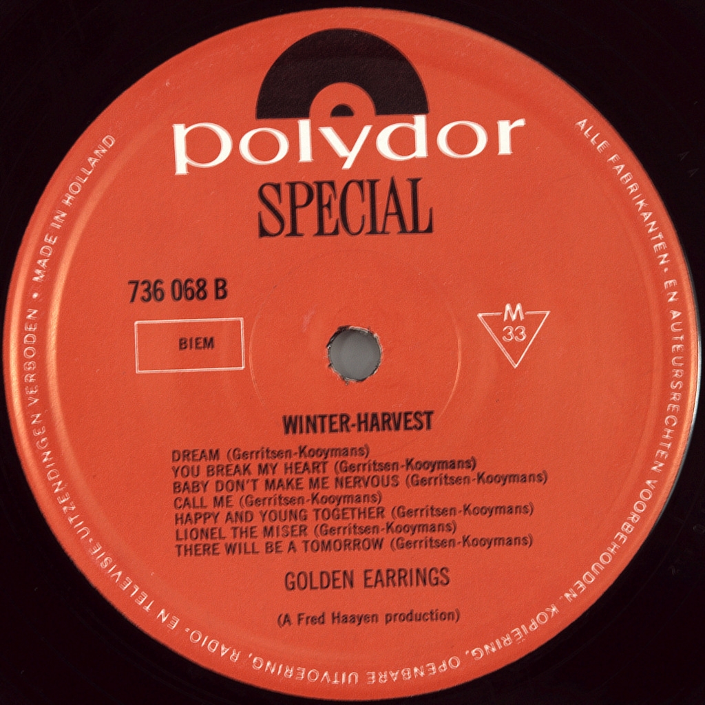 GOLDEN EARRING-WINTER-HARVEST-1967-FIRST HOLLAND PRESS-POLYDOR - number 736068