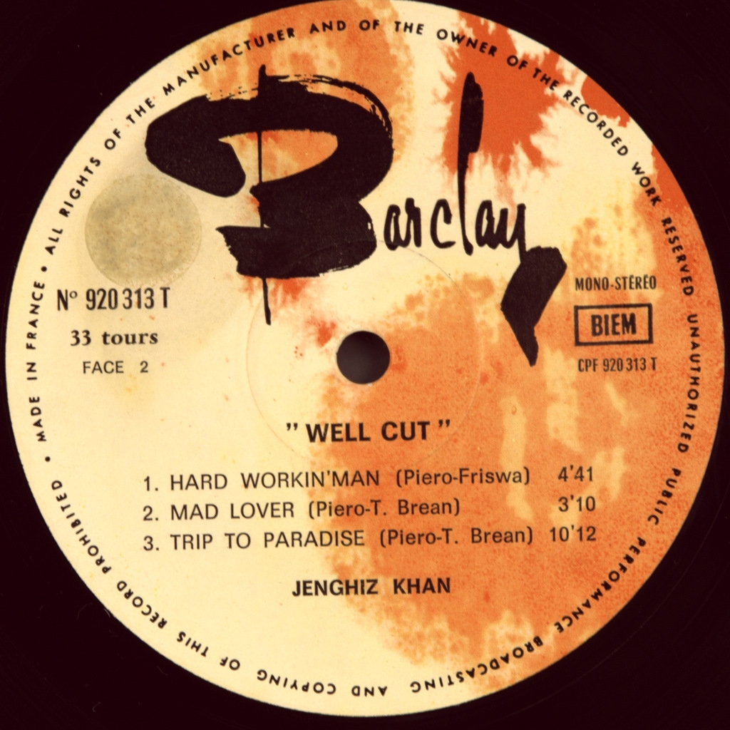 This Belgian collective referred to hard rock, to heavy progressive. The band was formed in 1970 on the basis of pre-existing and the collapse of The Tim Brean Group Les Partisans and did not last long, releasing only one album "Well Cut", which became a collector's rarity. Short activities of Jenghiz Khan, one of the brightest pages in the biography of the Belgian composer, singer and musician Pierre Rapsat (Pierre Rapsat) Vinyl record in archival condition - NMINT/ARCHIVE. The cover is in absolute top condition - NMINT/ARCHIVE. Labels beautiful but has traces from sticker - NMINT.
