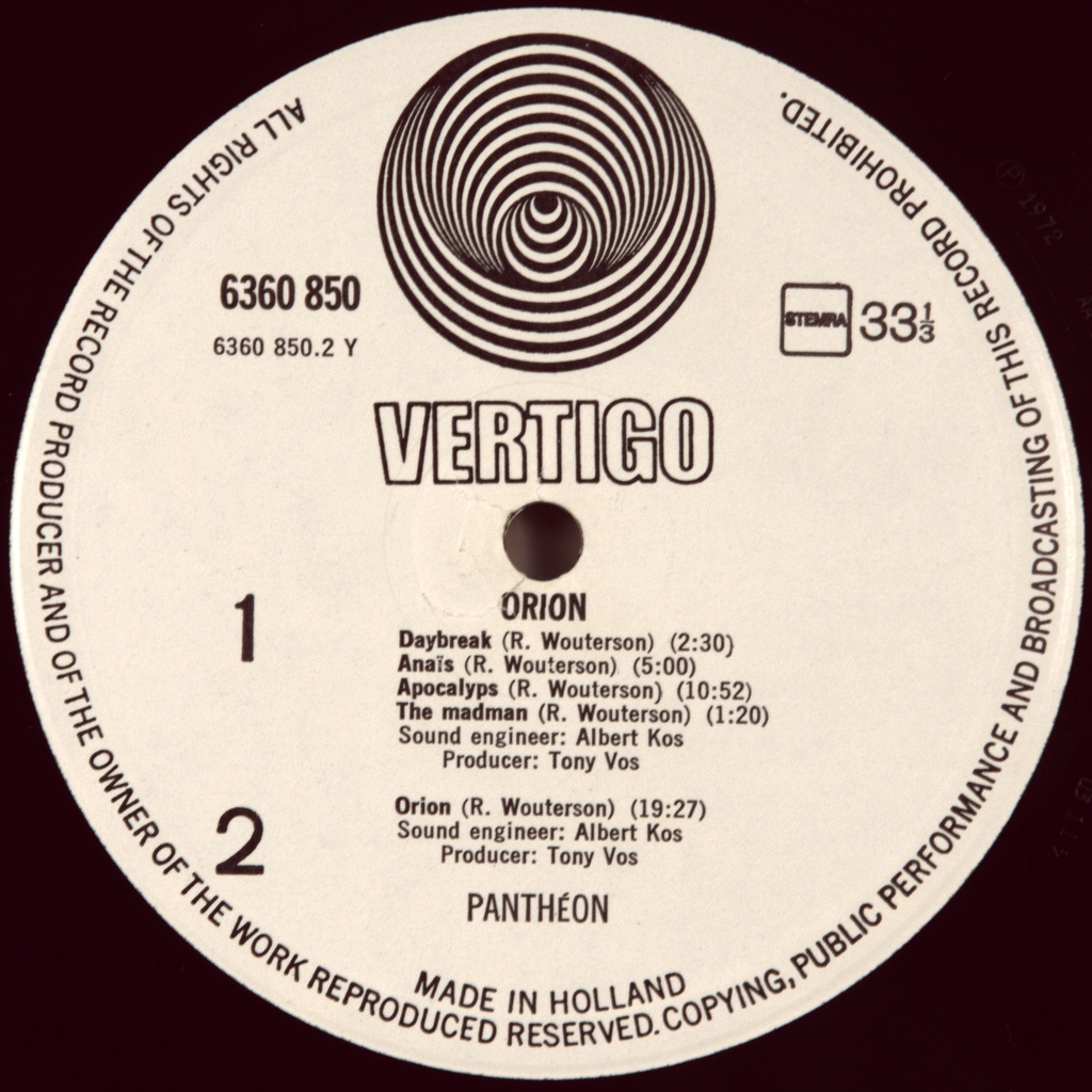 Lot 45PANTHEON-ORION-1972-FIRST PRESS HOLLAND-SWIRL VERTIGO-NMINT/NMINT