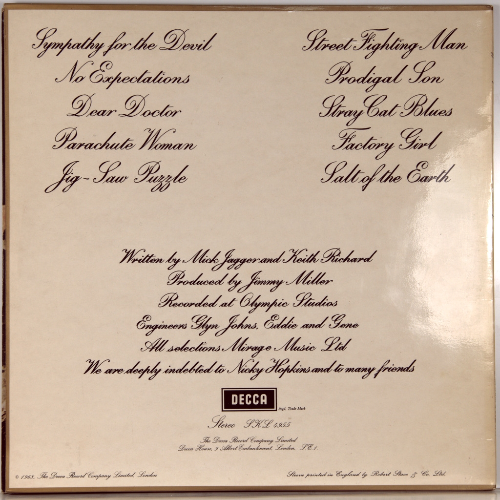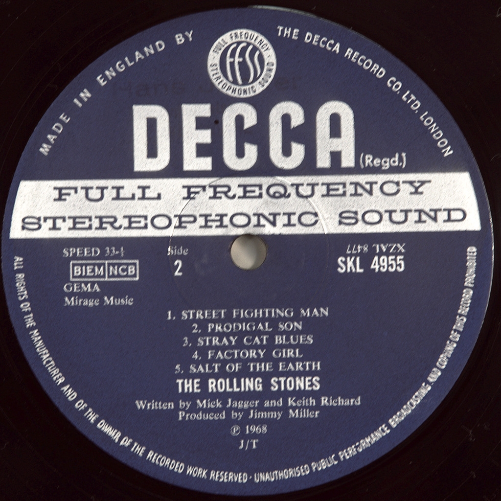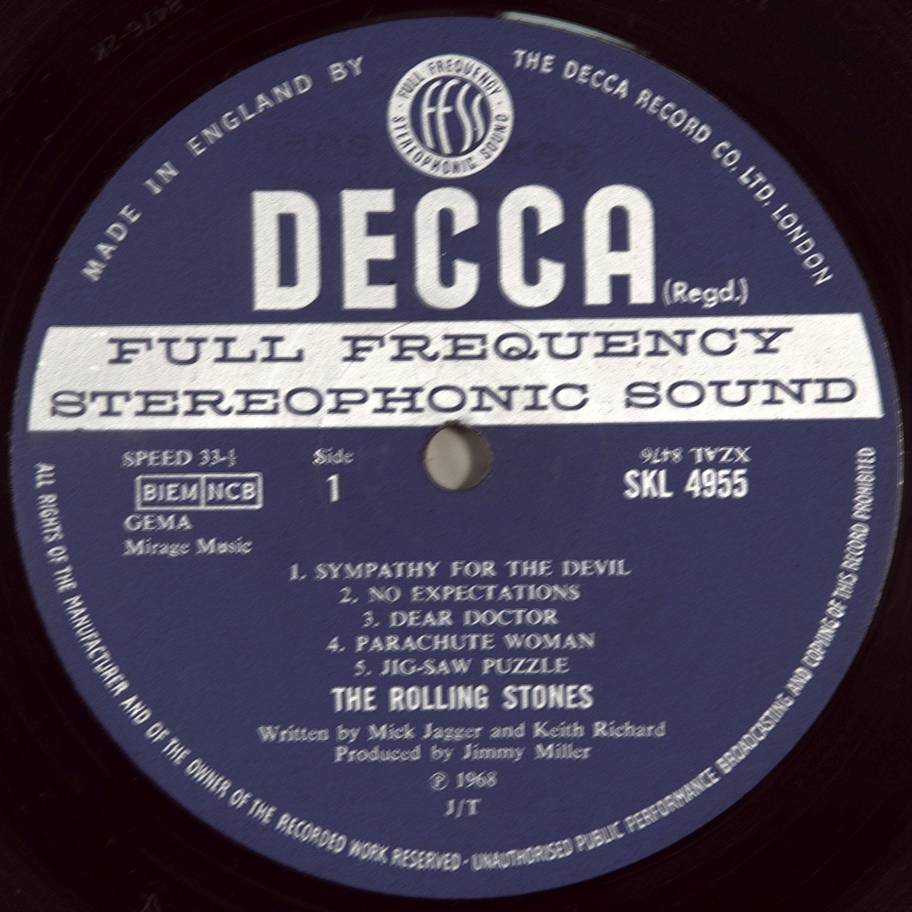 The ROLLING STONES-BEGGARS BANQUET-1968-FIRST pressing(STEREO) UK-DECCA - number SKL4955 matrix XZAL8476-2K/XZAL8477-2K Stamper 1H/1H