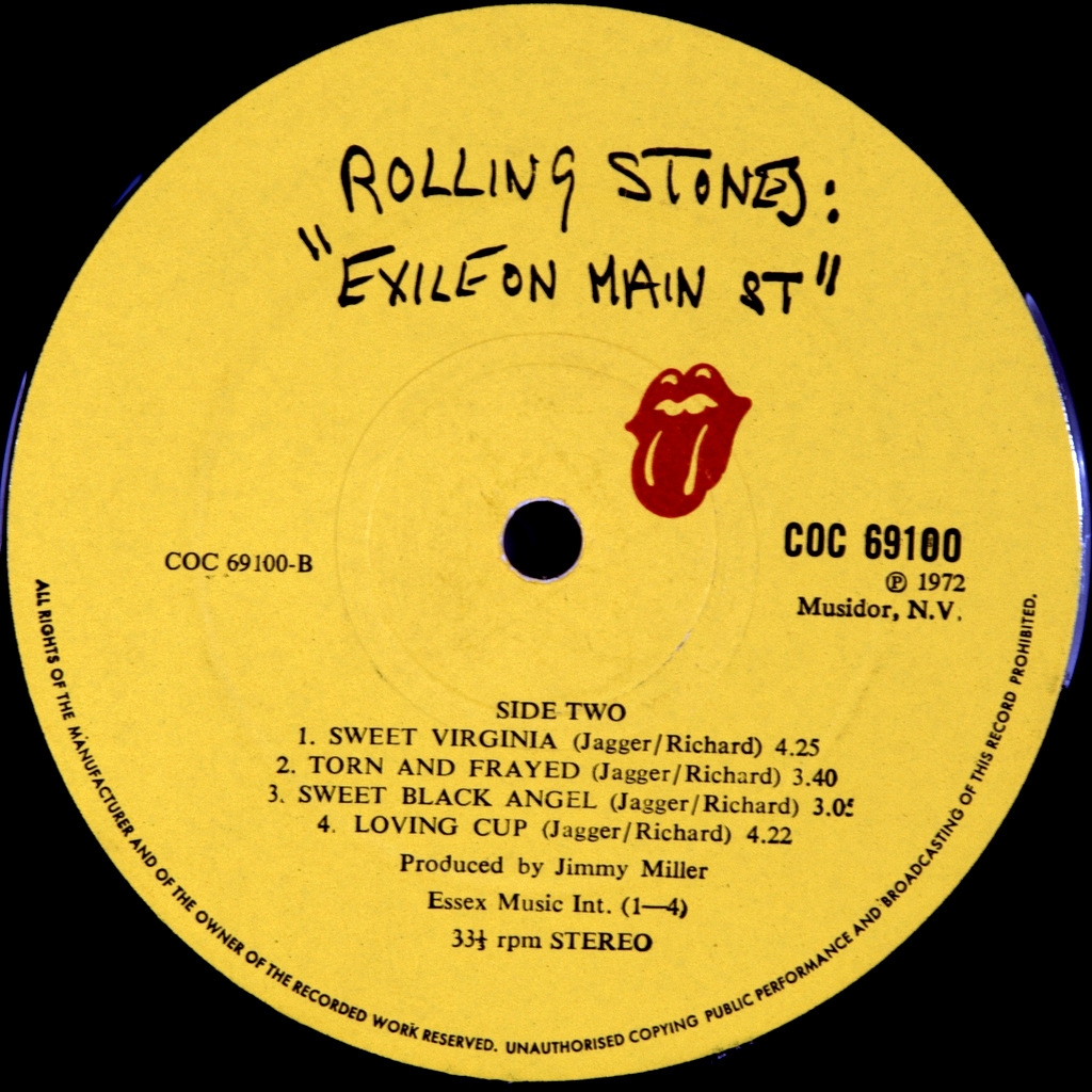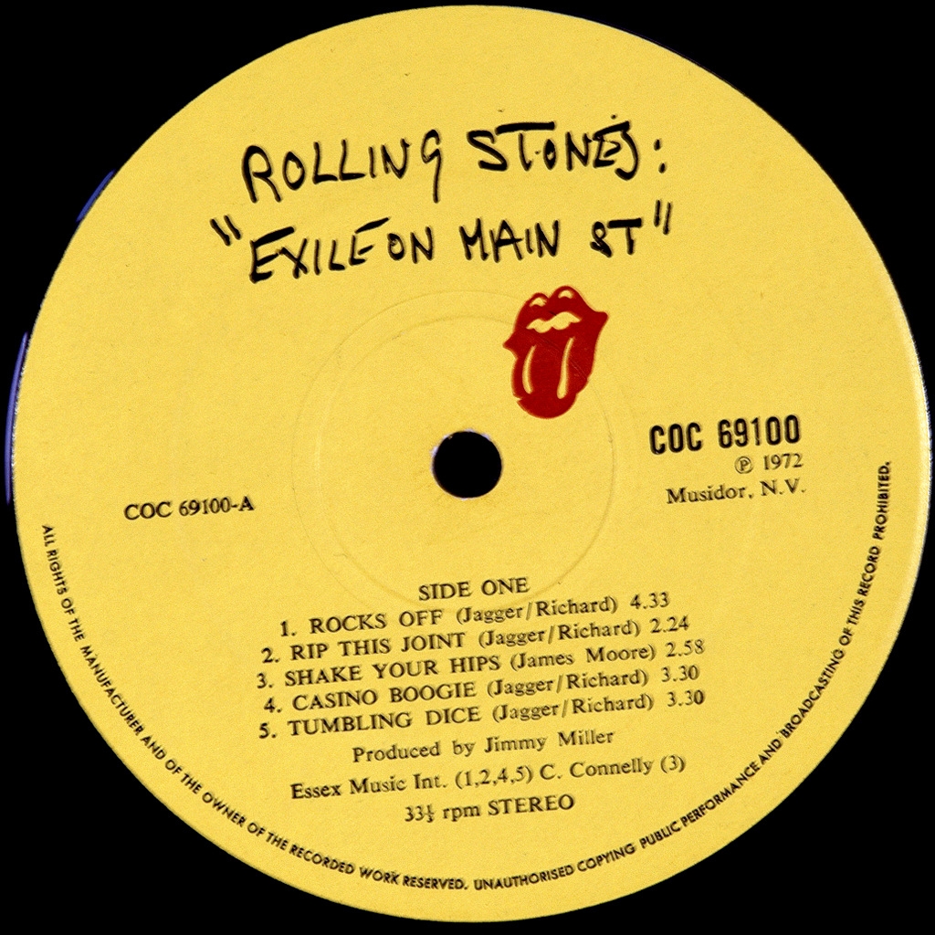 The ROLLING STONES-EXILE ON MAIN ST-1972-FIRST UK PRESS-ROLLING STONES number COC69100 matrix A1/B1/C2/D3