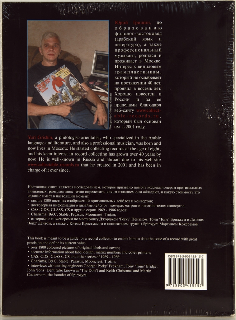 YURI GRISHIN-CHARISMA RECORDS 1969-1986 FAMOUS BRITISH COLLECTABLE RECORDS LABELS-2009-RUSSIA-ISBN978-5-903455-15-7 A guide to the first editions of records released by Charisma Records from 1969 to 1986. It contains more than 1800 color images. The language of the publication: Russian, English. Charisma Records from 1969 to 1986 is a book about vinyl records released by the famous record company Charisma Records in the 60s - 70s-80s of the last century. This reference book presents only the first editions, and the book itself can be useful for assessing the cost and rarity of records at exhibitions and in stores or as an informative home reading. ...more