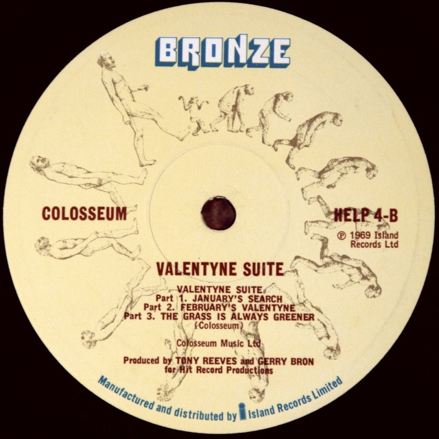 COLOSSEUM-VALENTYNE SUITE-1969-ORIGINAL PRESS 1972 UK -BRONZE- HELP 4 A very rare early British edition of the iconic album. Valentyne Suite was the second album released by the band Colosseum. It was the first release of the Vertigo Records album, which reached number 15 in the UK Albums chart in 1969. The album peaked at number 18 in Australia in 1970.