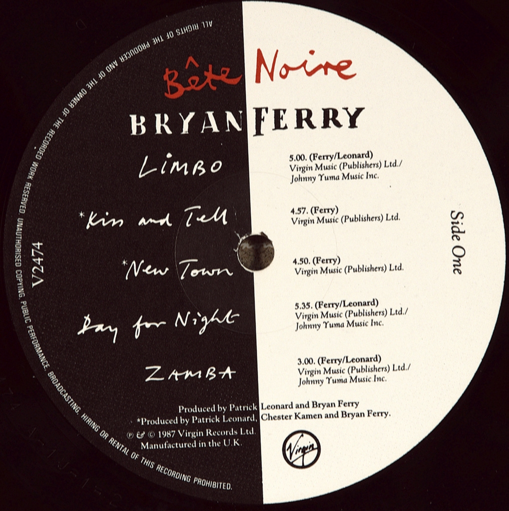 FERRY, BRYAN-BETE NOIRE-1987-FIRST UK PRESS-VIRGIN- V2474. Rare British original. Bête Noire is the seventh solo Studio album by British singer Bryan Ferry. The album was released in November 1987 on Virgin Records in United Kingdom and Reprise Records in the United States. It reached number 9 in the UK and was certified gold by BPI .