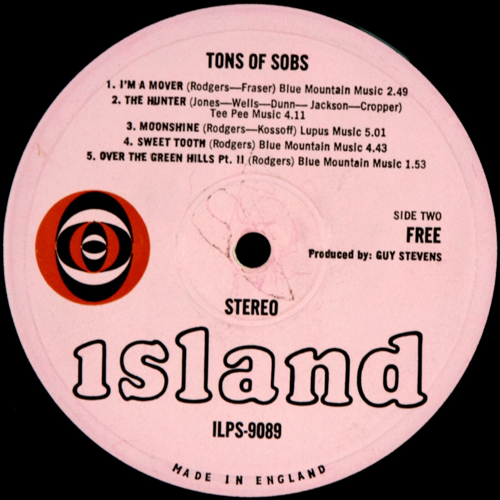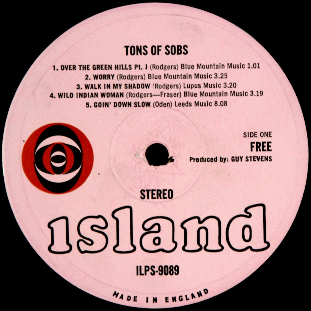 FREE-TONS OF SOBS-1969-ORIGINAL PRESS 1969 UK-ISLAND ILPS-9089. Matrices +A2/+B2. A very rare original of the second press of the cult album of the British blues prog. Tons of Sobs is the debut studio album by the British rock band Free, released by Island Records on March 14, 1969. One of the first albums in the blues-rock style. The album did not chart in the UK, but reached #197 on the Billboard Hot 200 in the US.At the time of recording the album, all the members of the band Free were very young: none of them had turned twenty yet, and bass guitarist Andy Fraser was sixteen years old at all. They achieved some success through constant touring, and their debut album was composed mainly of compositions performed at concerts. The budget allocated for the recording of the album was only 800 pounds[2]. Most of the album was recorded over a few days in October 1968. The album was originally scheduled for release in November 1968, but then postponed to early 1969 due to the late addition of a cover version of the blues composition "The Hunter" by Albert King