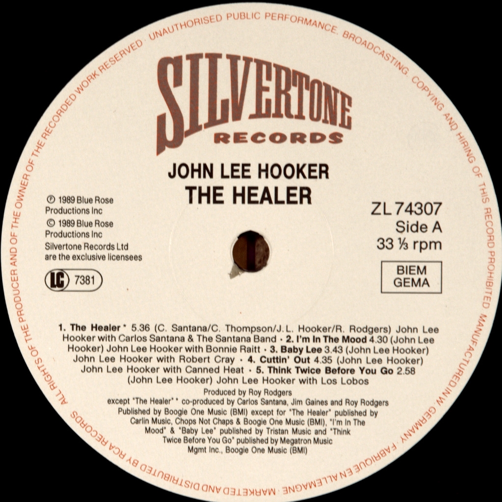 JOHN LEE HOOKER-THE HEALER-1989-FIRST PRESS UK/EU -SILVERTONE-ZL74307. Rare original one of the fathers of the Blues.The Healer is a Blues album recorded by John Lee Hooker, and implemented in 1989.. On the album together joined Bonnie Raitt, Charlie Musselwhite, Los Lobos and Carlos Santana. The Healer made up 62 seats in the Billboard200 , and the track "I'm in the Mood," received a Grammy Award for Best Traditional Blues Performance.