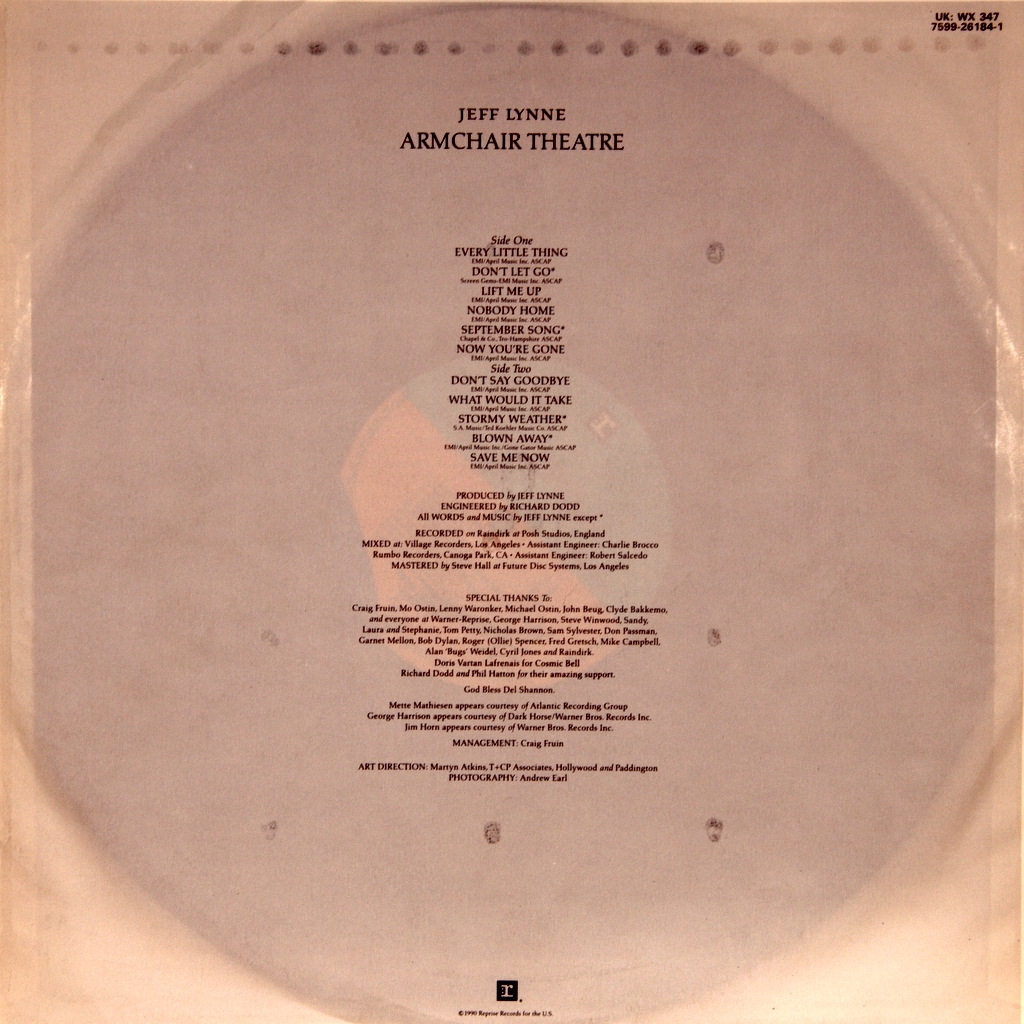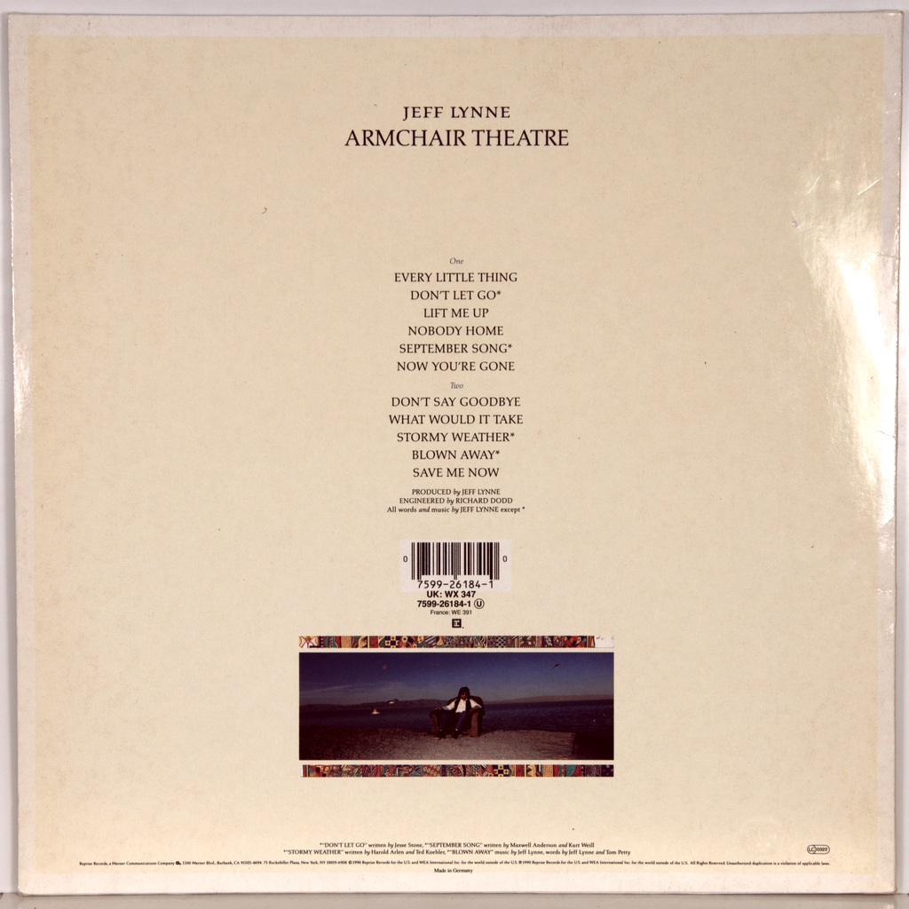 LYNNE, JEFF-ARMCHAIR THEATRE-1990-FIRST PRESS UK/EU GERMANY-REPRISE 7599-26184-1.A rare solo album by the famous maestro.Armchair Theatre is Jeff Lynn's first solo album released on June 12, 1990.
