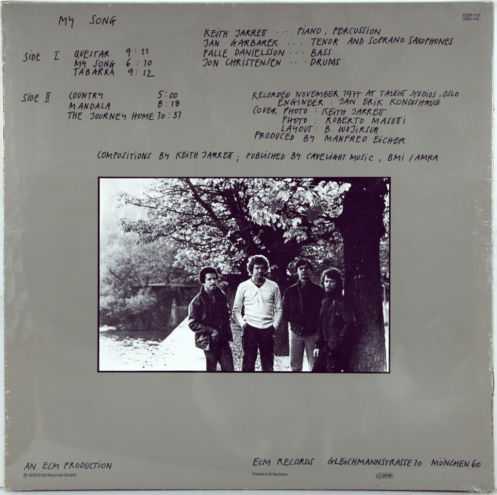 KEITH JARRETT-MY SONG-1978-FIRST PRESS GERMANY- ECM-ECM 1115. A rare original of the iconic jazzman. The album recorded by jazz pianist Keith Jarrett in November 1977 and released on ECM in June of the following year is the second release by his "European Quartet" featuring saxophonist Jan Garbarek and rhythm section, Palle Danielsson and John Christensen, after 1974, The AllMusic review by Scott Yanow states: "Due to the popularity of obsessive"My Song" this album is the most famous of Jarrett and Garbarek's collaborations, and in fact it is their most rewarding meeting ever. Jarrett wrote all six tracks, and the results were relaxed and introspective, but at the same time full of inner tension."