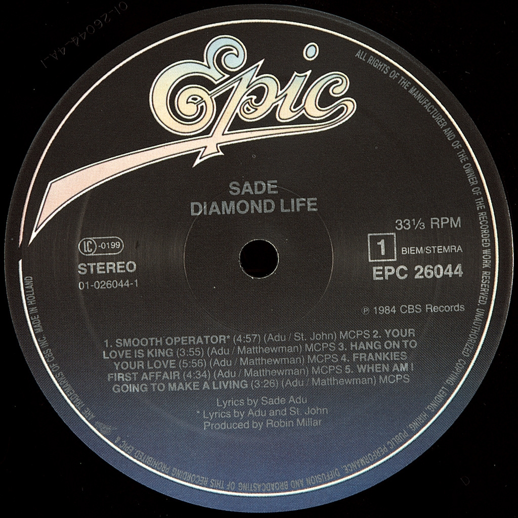 SADE-DIAMOND LIFE1984-FIRST HOLLAND PRESS-EPIC 26044 . Rare European original. Diamond Life is the debut Studio album by English group Sade .The album spawned four singles, including the singles "Your Love Is King" and " Smooth Operator ". Diamond Life was met with recognition from music critics and subsequently won a Brit Award for best British album in 1985. From a commercial point of view, the album was a success, receiving high praise in the UK and the USA , and then was certified multi-platinum in both regions. Diamond Life sold over six million copies worldwide, becoming one of the best-selling debut recordings of the era, and became the best selling debut British singer, which lasted twenty-four years.