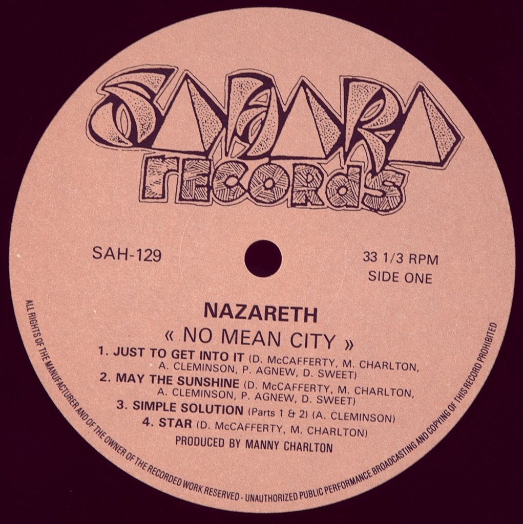 NAZARETH- NO MEAN CITY-1978- ORIGINAL PRESS 1982 UK-SAHARA-SAH129. A rare British edition of the iconic album. The tenth studio album by the band Nazareth. The album cover was painted by Rodney Matthews, a famous English fantasy illustrator who created covers for the works of many other artists (Scorpions, Thin Lizzy and others) The title of the CD is borrowed from the novel "No Mean City" (1935) by Alexander MacArthur and Kingsley Long. With this album, the band's sound has become heavier, given the addition of guitarist Zal Cleminson from the Sensational Alex Harvey Band. The popularity of the album allowed the band to perform with several big names such as Thin Lizzy on their 1978/79 tour.