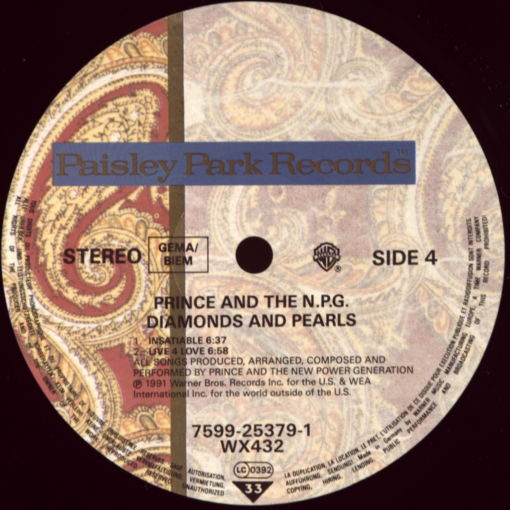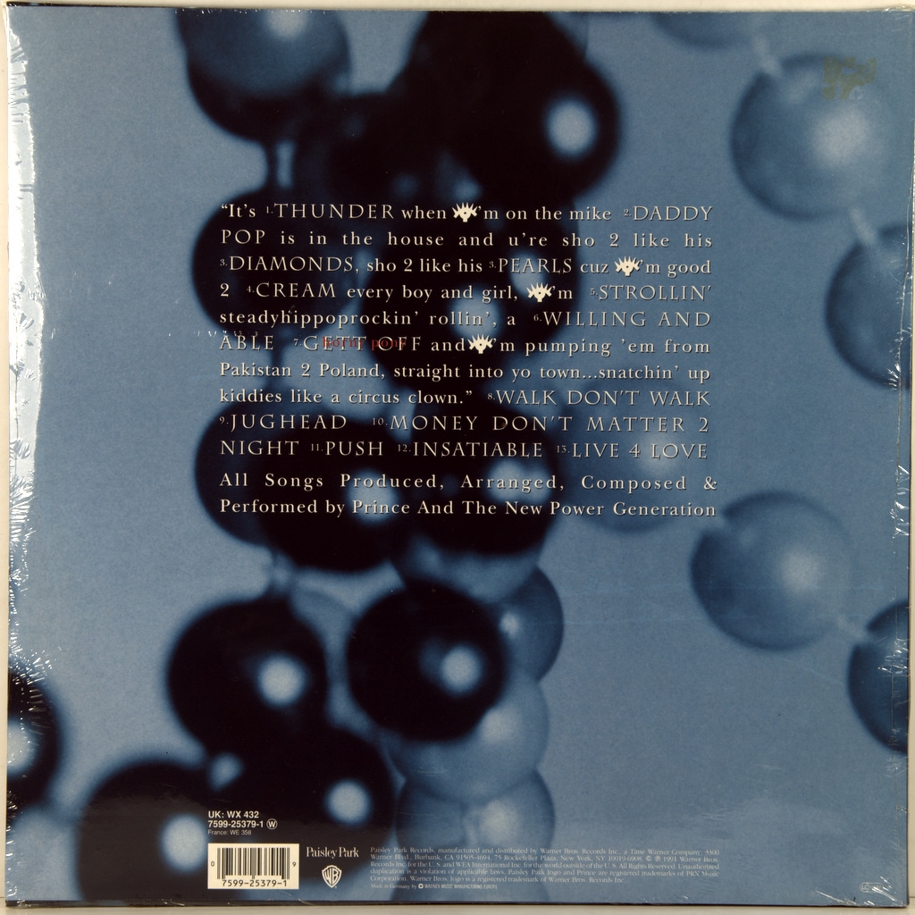 PRINCE AND THE NEW POWER GENERATION-DIAMONDS AND PEARLS (2LP'S)-1991-FIRST PRESS UK/EU-GERMANY-WARNER-WX432/7599253791. A very rare original of the cult album.Diamonds and Pearls is the 13th studio album by American recording artist Prince, and the first with his new backing band The New Power Generation. It was released on October 1, 1991, by Paisley Park Records and Warner Bros. Records. The album produced several hit singles, including "Gett Off", "Cream"," Money Don't Matter 2 Night"," Insatiable", and the title track. Dancers Lori Werner (then dancing under the stage name Lori Elle) and Robia Lamort, known as "diamond" and "Pearl" respectively, appeared on the holographic screen. cover art (reprints of the album are not holographic). Diamond and Pearl also appeared in the music videos for "Cream"," Strollin'"," Gett Off " and the title track, and participated in the Prince Diamonds and Pearls Tour. Diamonds and Pearls contains a hybrid of musical styles, from the funky "Daddy Pop", " Jughead "and the first single" Gett Off "to some more mainstream pop/rock songs recorded by Prince over a period of time, such as" Cream"," Money Don't Matter 2 Night " The album was a huge success and placed in the top ten in all countries . In 20 countries, it received the status of gold and platinum, and in the United States two platinum, and in Australia-four platinum.