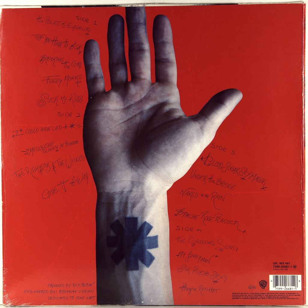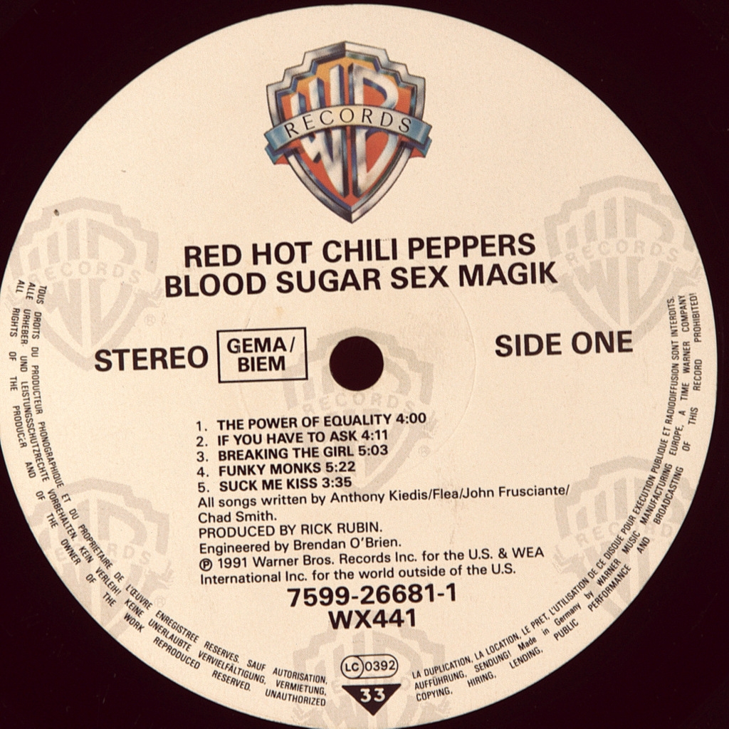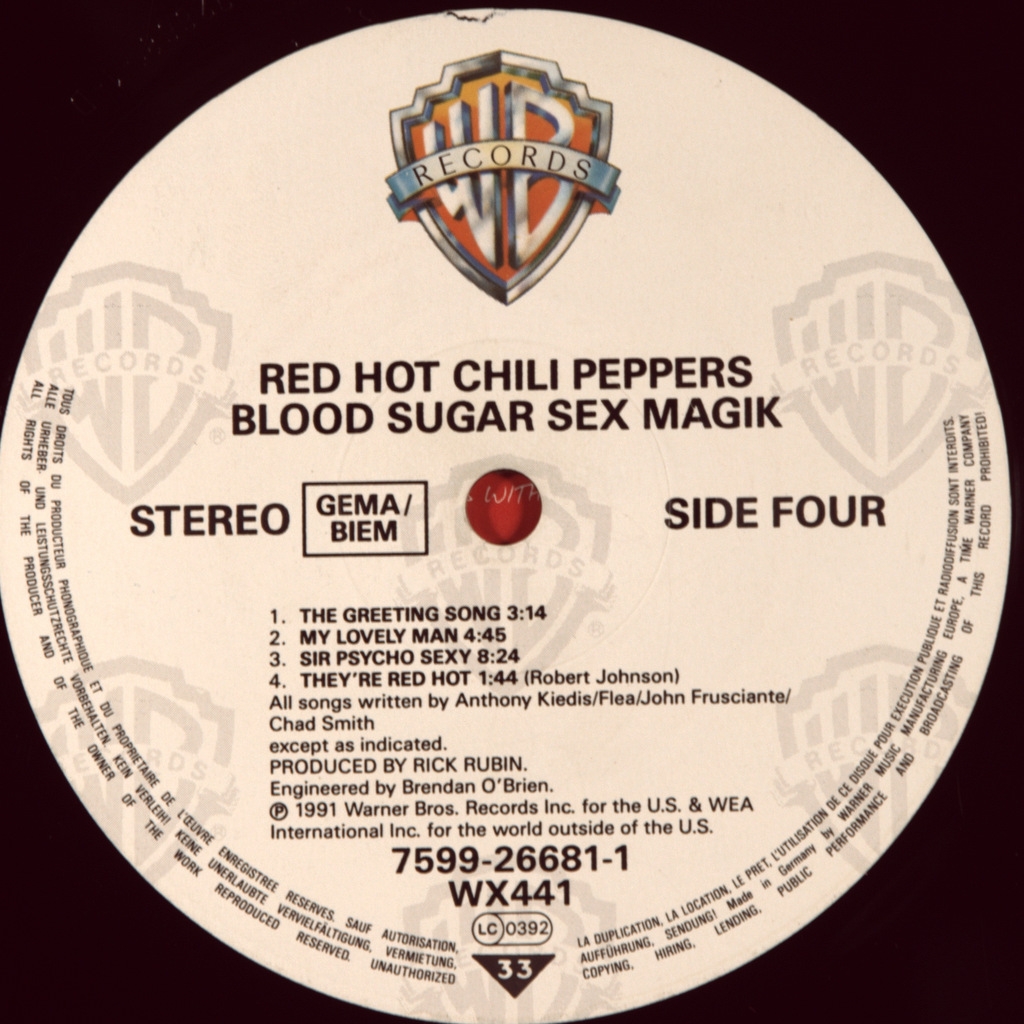 RED HOT CHILI PEPPERS-BLOOD SUGAR SEX MAGIK(2LP'S)-1991-FIRST UK/EU PRESS-WARNER BROS.-7599-26681-1 . A very rare original of a cult album. Blood Sugar Sex Magik is the fifth studio album by American rock band Red Hot Chili Peppers, released on September 24, 1991. Produced by Rick Rubin, the album became the band's first LP to be released on the Warner Bros. label. Records. Musically, the CD differed from Mother's Milk, the band's previous work: it contained much less "heavy" guitar riffs; the main themes of the songs here were sex, death and drugs, as well as lust and wealth. The album reached number three on the Billboard 200 chart, earning the band critical acclaim and international success; it sold over 13 million copies in total.