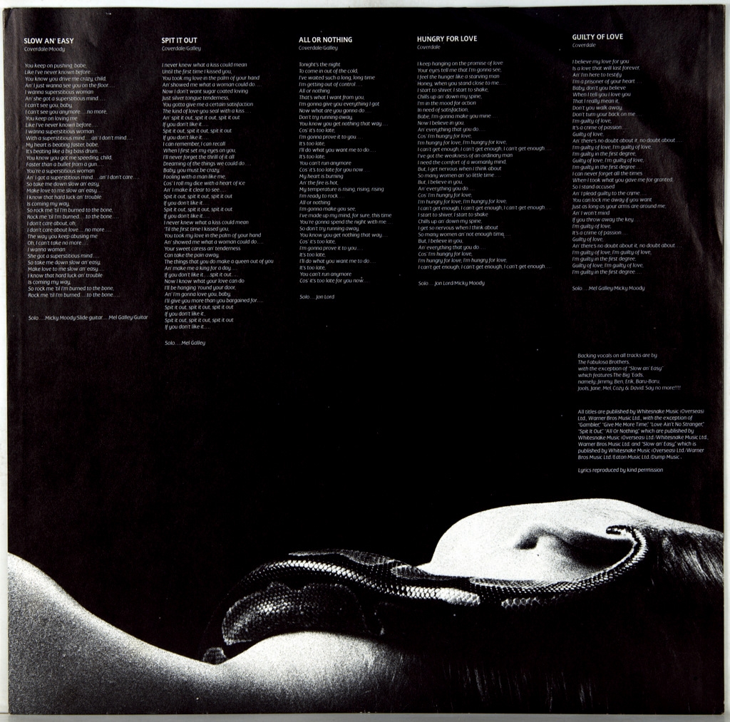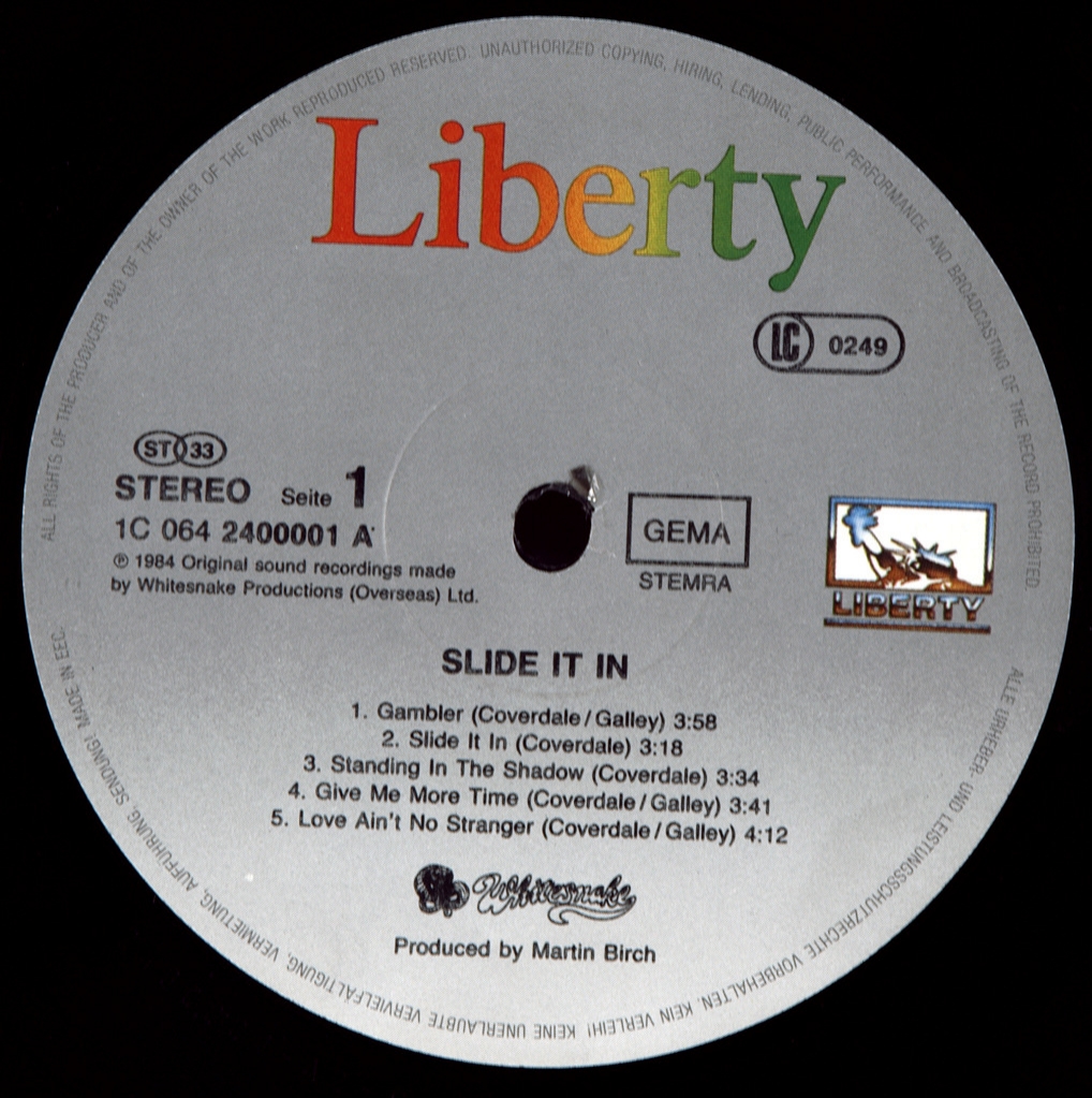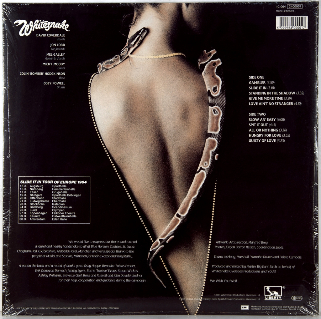 WHITESNAKE-SLIDE IT IN-1984-THE FIRST EU-GERMANY-LIBERTY-1C0642400001 PRESS.A very rare European original by a cult hard band. Slide It In is the sixth studio album by English rock band Whitesnake. Originally released on January 30, 1984 in Europe by the Liberty/EMI label, it was redesigned for the American market and released on April 16, 1984 in North America by the Geffen label. A "European" mix was released in Japan on March 23, 1984, and an "American" remix from CBS/Sony was released on December 21, 1984. Although he was not a great success, he helped the group enter the American market and achieve a breakthrough in the late 1980s. Historically, this was the last Whitesnake recording to use the band's original "snake" logo. The album reached number 9 in the charts, becoming the fourth in the top 10 in the UK. In the United States, it reached number 40 on the Billboard 200 chart. In 1988, the album returned to the US charts due to the success of Whitesnake's self-titled album (1987) and eventually went double platinum, taking 1st place in the number of weeks on the Billboard 200 chart. The album sold over six million copies worldwide..