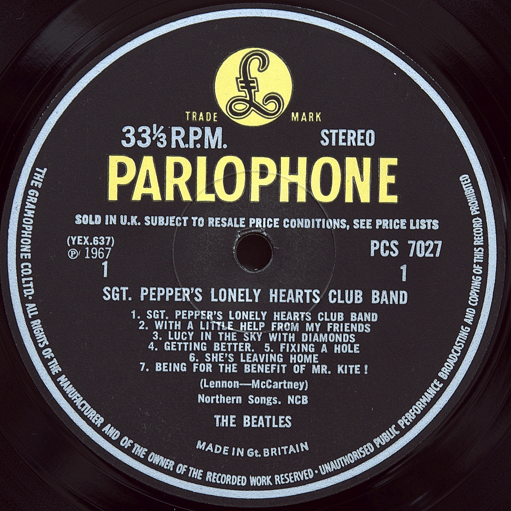 BEATLES-SGT PEPPER'S LONELY HEARTS CLUB BAND-1967-FIRST PRESS (STEREO) UK-PARLOPHONE-PSC7027 Matrix Numbers: Side 1: YEX 637-1; Side 2: YEX 638-1. Sgt. Pepper's Lonely Hearts Club Band is the eighth album by the British rock band The Beatles. Many critics refer to Sgt. Pepper's Lonely Hearts Club Band is among the most influential rock albums of all time. In particular, it was named the best album of all time by Rolling Stone magazine (2003). According to a vote conducted by the BBC radio station among its listeners for the fiftieth anniversary of the British charts in 2006, the album ranks first in popularity in the UK. Sgt. Pepper's Lonely Hearts Club Band ranks ninth in the list of albums-the world's leading sales with a result of more than 30 million copies.The album was recorded over a 129-day period beginning on December 6, 1966, and released on June 1, 1967 in the United Kingdom (the album went on sale in the United States on June 2 of that year). The album won 4 Grammy Awards in the following categories: 1. Album of the Year, 2. Best Contemporary Performance by a Band, 3. Best Album Sound Design, 4. Best Album Cover.