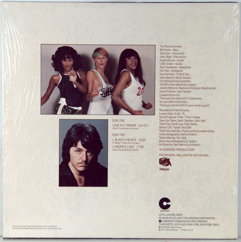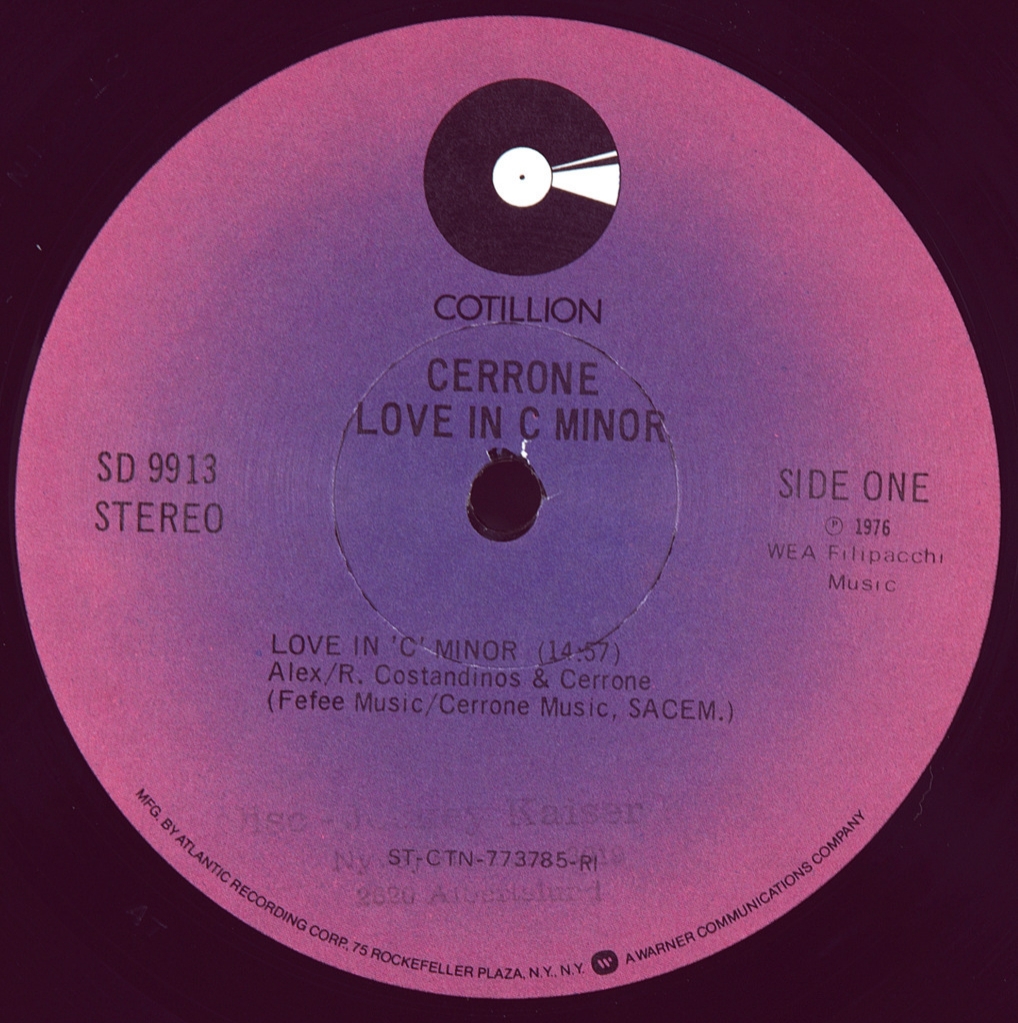 CERRONE-LOVE IN C MINOR-1976-FIRST PRESS USA-COTILLION-SD9913. A rare American original of a cult album. Love in C Minor is the debut album by French musician and producer Jean-Marc Cerron, released in 1976 in France on Malligator, in Europe on Atlantic, in Spain on Hispavox, and in the USA in 1977 on Cotillion. Now Cerrone is already called a "legend of dance music", who had a huge impact on entire generations of DJs and is considered, along with Giorgio Moroder, the trendsetter of Eurodiscoe. One of the centers of Eurodisco (along with Munich) was London's Trident Studios, which was fueled by France. It was here that Parisians Jean-Marc Cerron and Alec R. Costandinos decided to record their first disco opus with the assistance of sound engineer Peter Kelsey. As a result, an album was born called Love in C Minor. At the Billboard Disco Forum in 1978, Cerrone received six awards, including Artist of the Year in Disco Music.