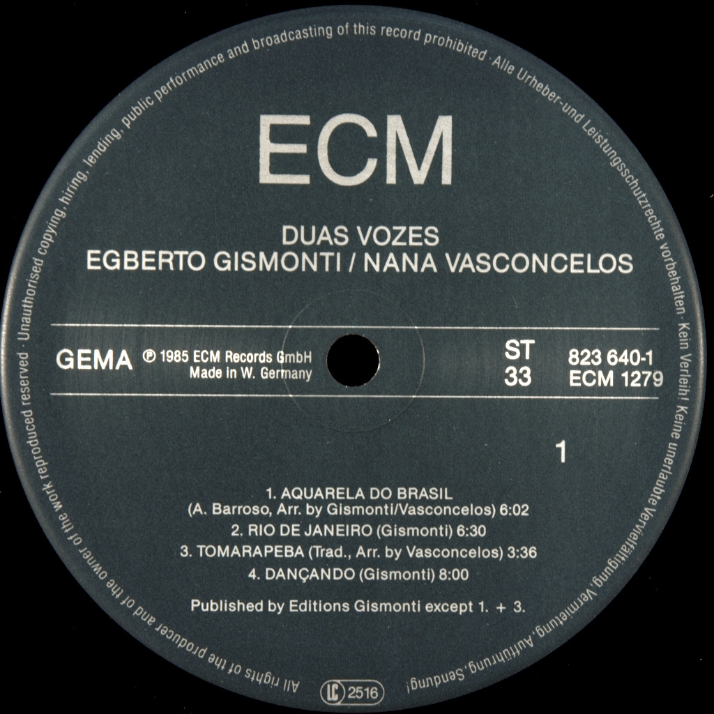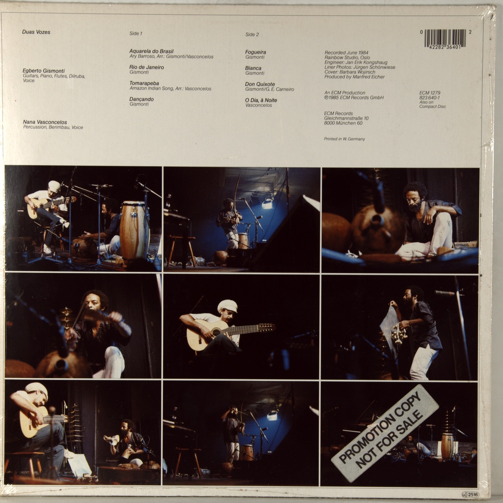 EGBERTO GISMONTI/ NANA VASCONCELOS-DUAS VOZES -1985-GERMANY'S FIRST PRESS- ECM-ECM1279. A rare original of the iconic jazzman. Duas vozes is the second album by Brazilian jazz duo Egberto Gismonti and Nana Vasconcelos, recorded in 1984 and released in 1985 on ECM. In an AllMusic review, Alvaro Neder gave the album 4.5 points, noting that "Egberto is very fond of percussion and ethereal configurations, which take on primary importance in his music, without necessarily being related with or without a musical theme or melody."