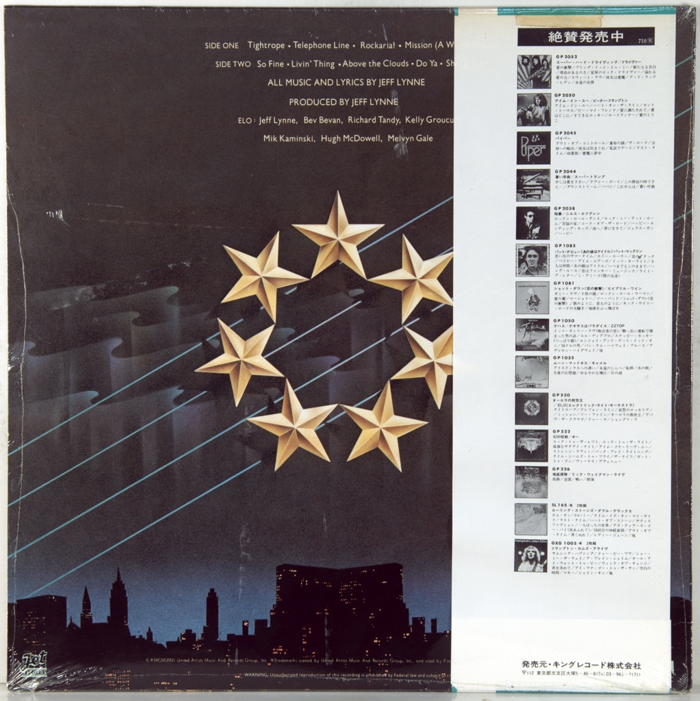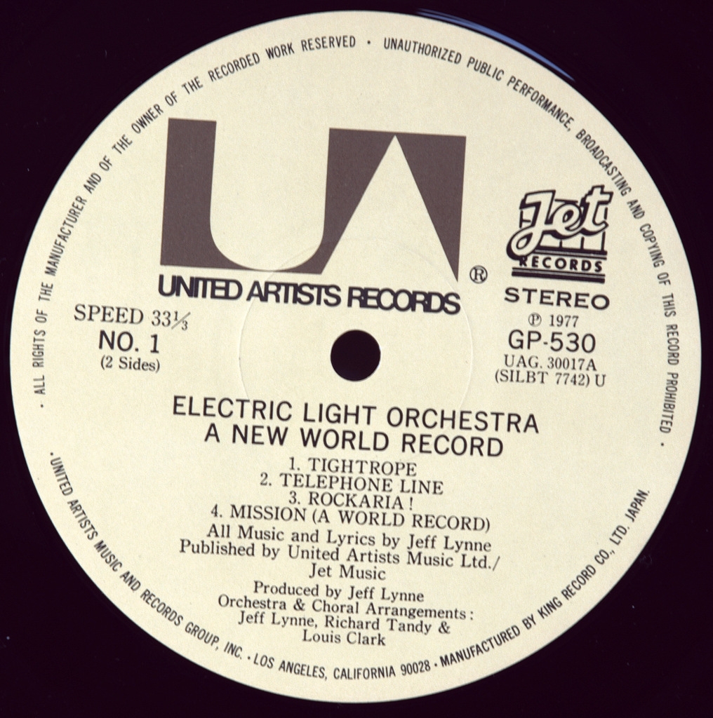 ELECTRIC LIGHT ORCHESTRA-A NEW WORLD RECORD -1976-ORIGINAL PRESS 1977 JAPAN-UA-GP-530. A rare Japanese original of the cult album. A New World Record is the sixth studio album by the British band Electric Light Orchestra, released in September 1976. The album was remastered and re-released in 2006 with the addition of six bonus tracks. A New World Record became the band's first album to reach the top ten in the UK (the previous three albums had great success in the USA, but not in the homeland of the musicians). The album was certified platinum in both the UK and the USA, and sold five million copies in the first year after its release. Like the previous album, A New World Record was recorded at Munich's Musicland Studios.