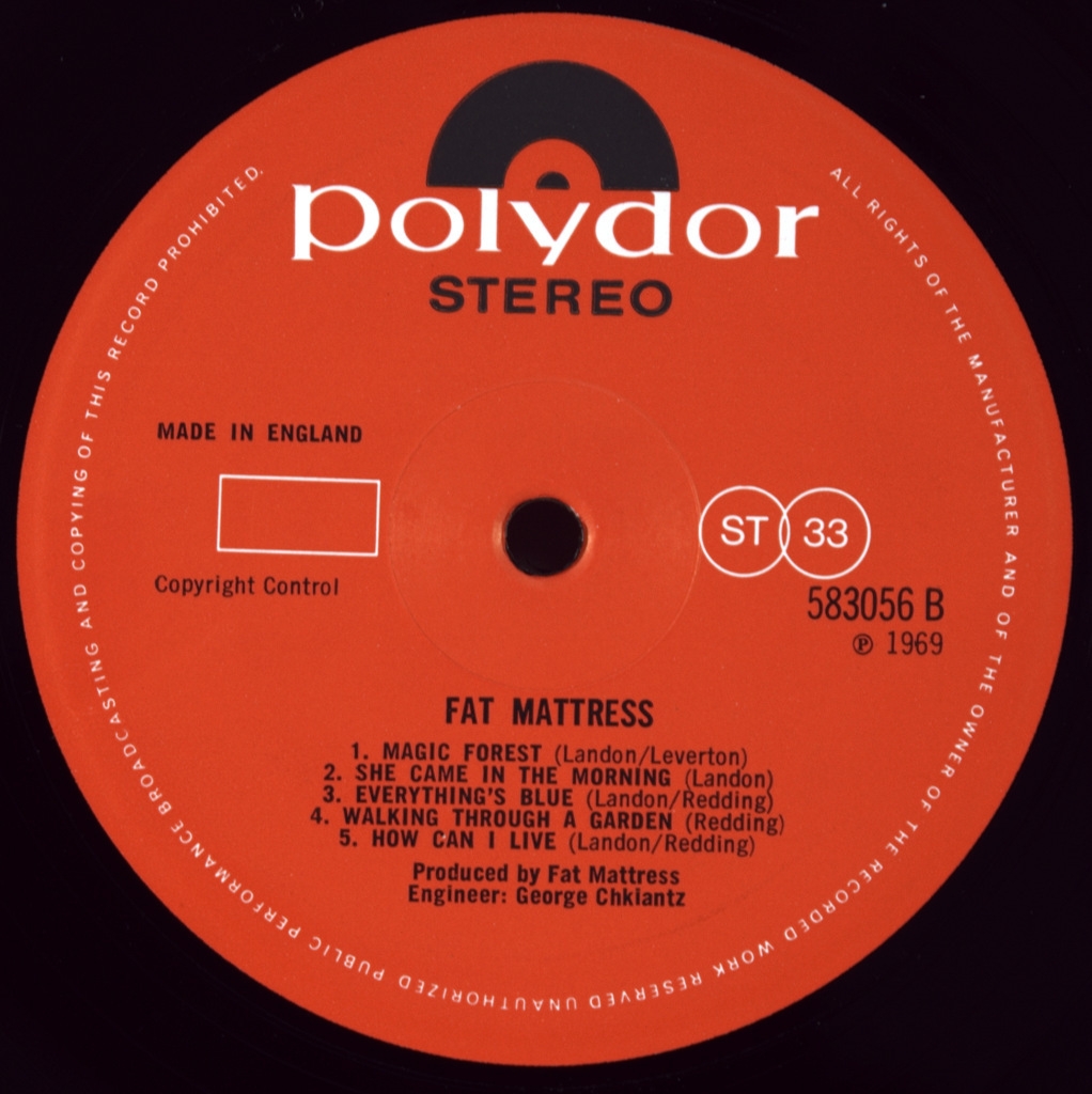 FAT MATTRESS- FAT MATTRESS- 1969 -THE FIRST UK PRESS-POLYDOR-583056. A very rare British original of a cult album by a psycho folk-blues progressive British band. Fat Mattress is the self—titled debut studio album by the English rock band Fat Mattress, released on August 15, 1969. Fat Mattress was founded in late 1968 by vocalist Neil Landon and guitarist and vocalist Noel Redding, who at that time was playing bass guitar in the popular psychedelic rock band The Jimi Hendrix Experience. Landon and Redding had already written several songs for Landon's cancelled solo project and, having invited bassist Jim Leverton and drummer Eric Dillon, completed the writing and began recording their first material. The self-titled debut album was completed the following year and released in the UK by Polydor Records on August 15, and in the US by Atco Records in October. In support of the album, the band also released their debut single "Magic Forest", which reached number 11 in the Netherlands. Fat Mattress's debut album was a minor commercial success, peaking at number 134 on the US Billboard 200 chart.