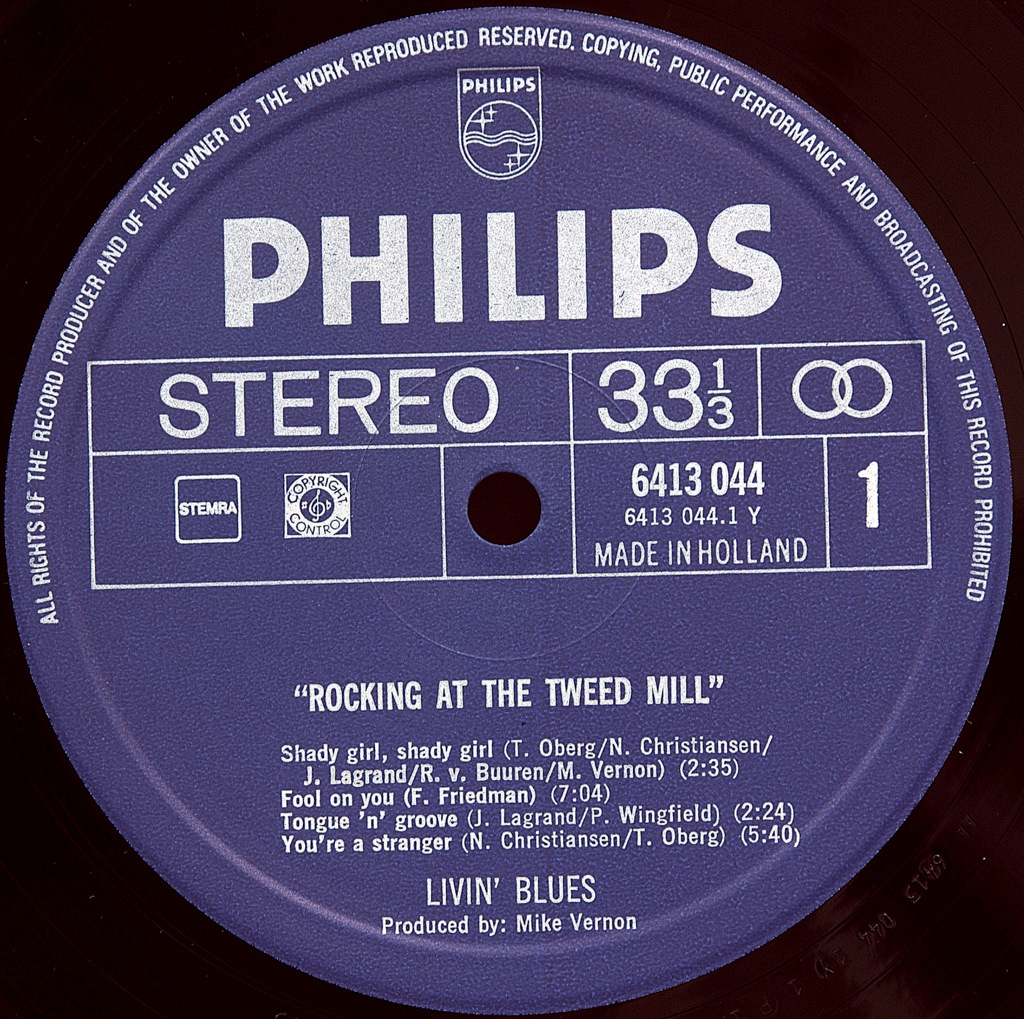 LIVIN' BLUES-ROCKING AT THE TWEED MILL-1973-FIRST PRESS HOLLAND-PHILIPS-6413044. A rare German original of the cult album. .Rocking At The Tweed Mill is the fourth studio album by Dutch rock band Livin' Blues. It was released in 1973 with the support of the Philips label. In 1972, the band broke up with Eggermont and began collaborating with British producer Mike Vernon. Their first record together was "Rocking At The Tweed Mill", on which Arjen Cumming drummed. The album received high marks and hit all European charts.