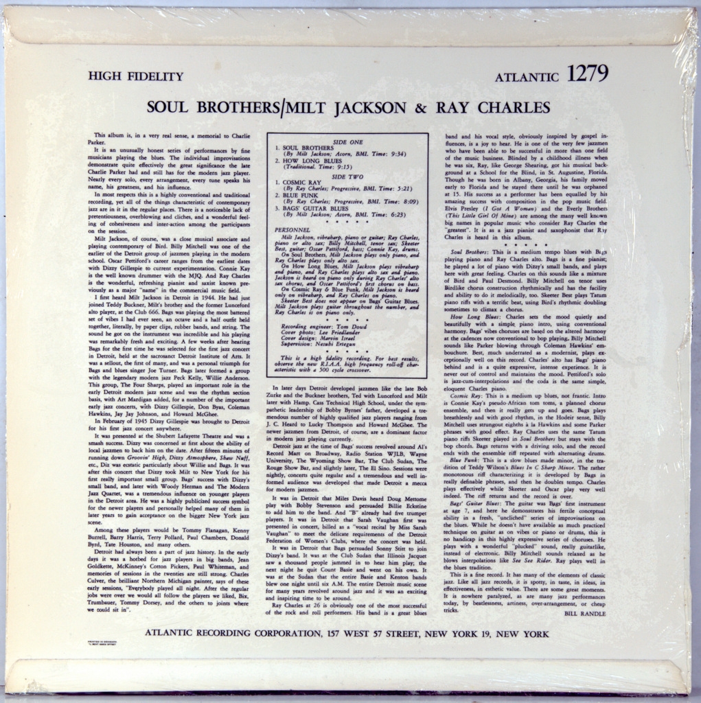 MILT JACKSON AND CHARLES, RAY-SOUL BROTHERS-1958-FIRST PRESS (MONO) DK-ATLANTIC-1279. A rare Danish original of the iconic album. Soul Brothers is the third album recorded by Ray Charles and the eleventh album by Milt Jackson. All songs written by Ray Charles. The album was awarded 4 stars by Allmusic and Downbeat.