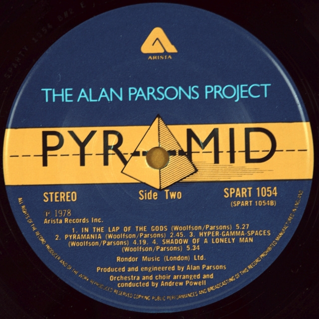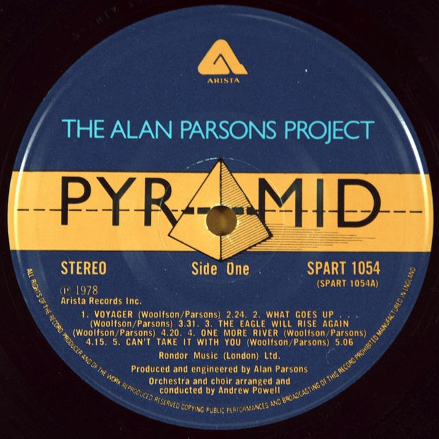 ALAN PARSONS PROJECT-PYRAMID-1978-First Press UK-ARISTA-SPART1054 matrix A1/B1 Pyramid is the third studio album by the English art rock band "The Alan Parsons Project", released in 1978. The album was nominated for a Grammy Award in 1978 in the category "Best Production Work in the genre of Modern Music". The main theme of the album was the Great Pyramid of Giza and ancient Egyptian culture, which were at the peak of popularity in the USA and Great Britain in those years