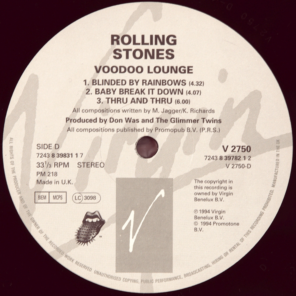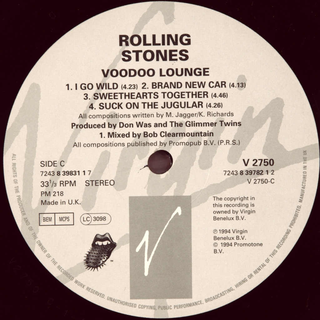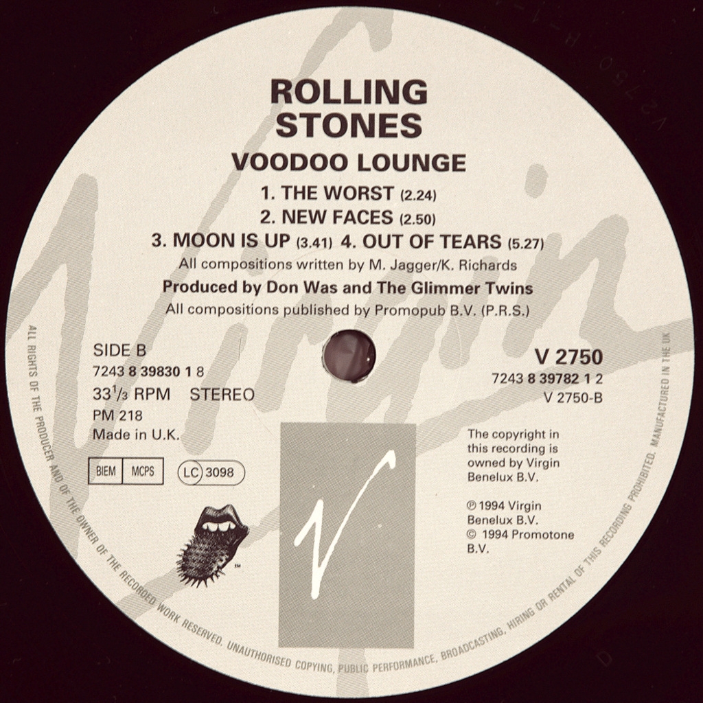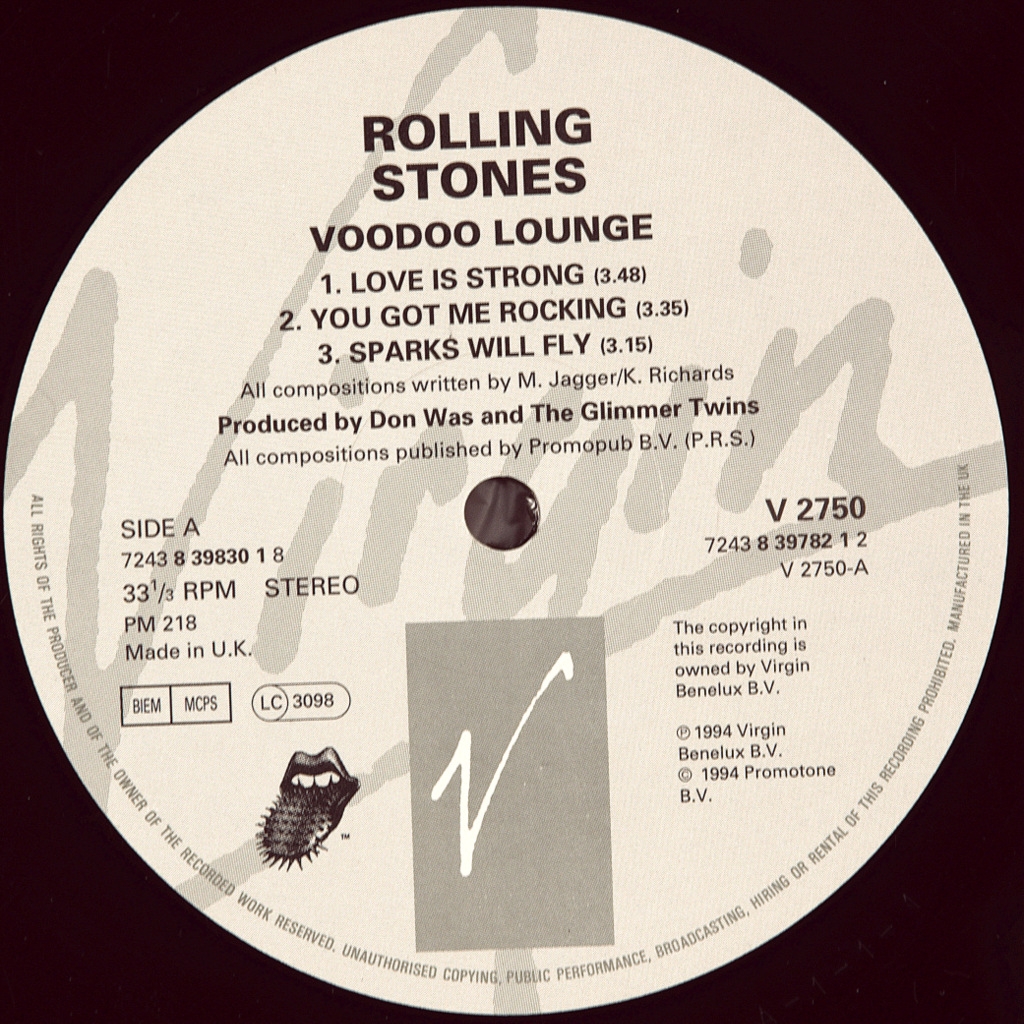 ROLLING STONES-VOODOO LOUNGE-1994-FIRST PRESS UK-VIRGIN- V2750 Voodoo Lounge is the twentieth studio album by the English rock band The Rolling Stones, released on July 11, 1994. This album was the band's first release as part of their new collaboration with Virgin Records and their first studio album in five years, since the release of Steel Wheels in 1989. Voodoo Lounge is also the band's first album without original bassist Bill Wyman, who left the band in early 1991, although The Rolling Stones announced his departure only two years later, in 1993. Voodoo Lounge sold well, reaching gold or platinum status in several countries, but failed to chart in the US top 40. The songs "Love Is Strong" and "You Got Me Rocking" reached #14 and #23 in the UK, respectively, and "You Got Me Rocking" became a major hit on most of the Stones' subsequent tours. The album received several positive reviews and in 1995 won the first Grammy Award for Best Rock Album.