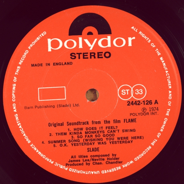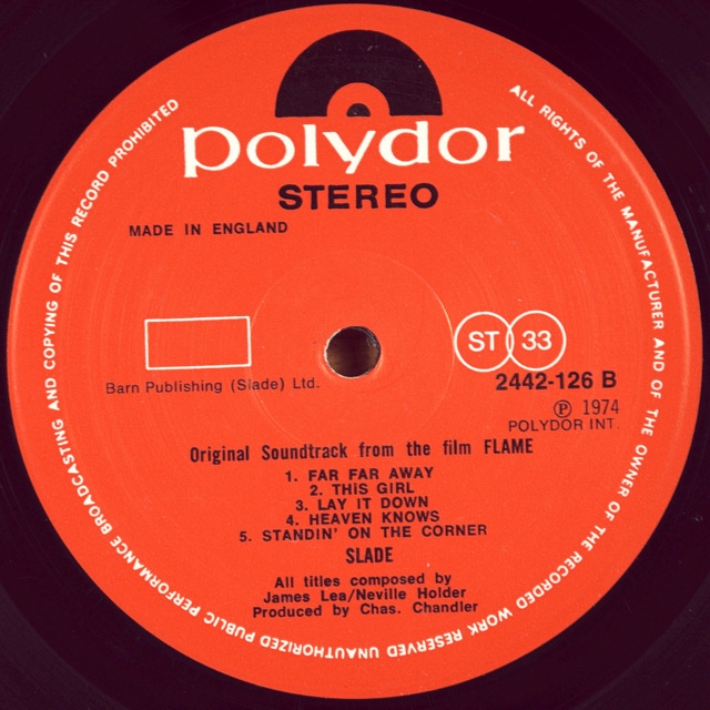 SLADE-SLADE IN FLAME-1974-THE FIRST UK-POLYDOR PRESS- 2442-126. A rare British original. Slade in Flame is the fifth studio album by the British rock band Slade. It was released on November 29, 1974, ranked 6th in the UK and was certified gold by the BPI in February 1975.