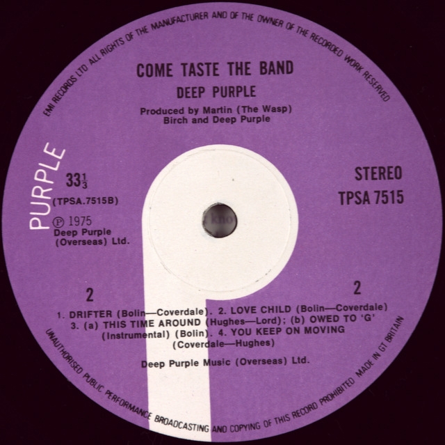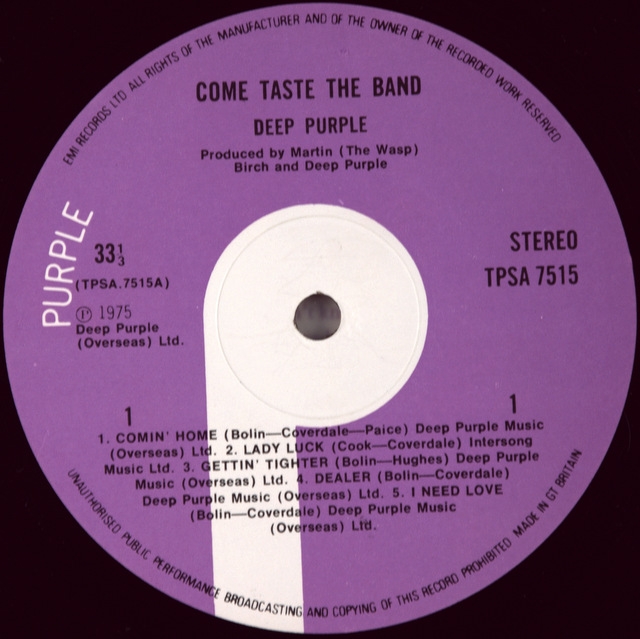 DEEP PURPLE-COME TASTE THE BAND-1975-First UK press - PURPLE REC. - TPSA7515 of the matrix A-1U/B-1U