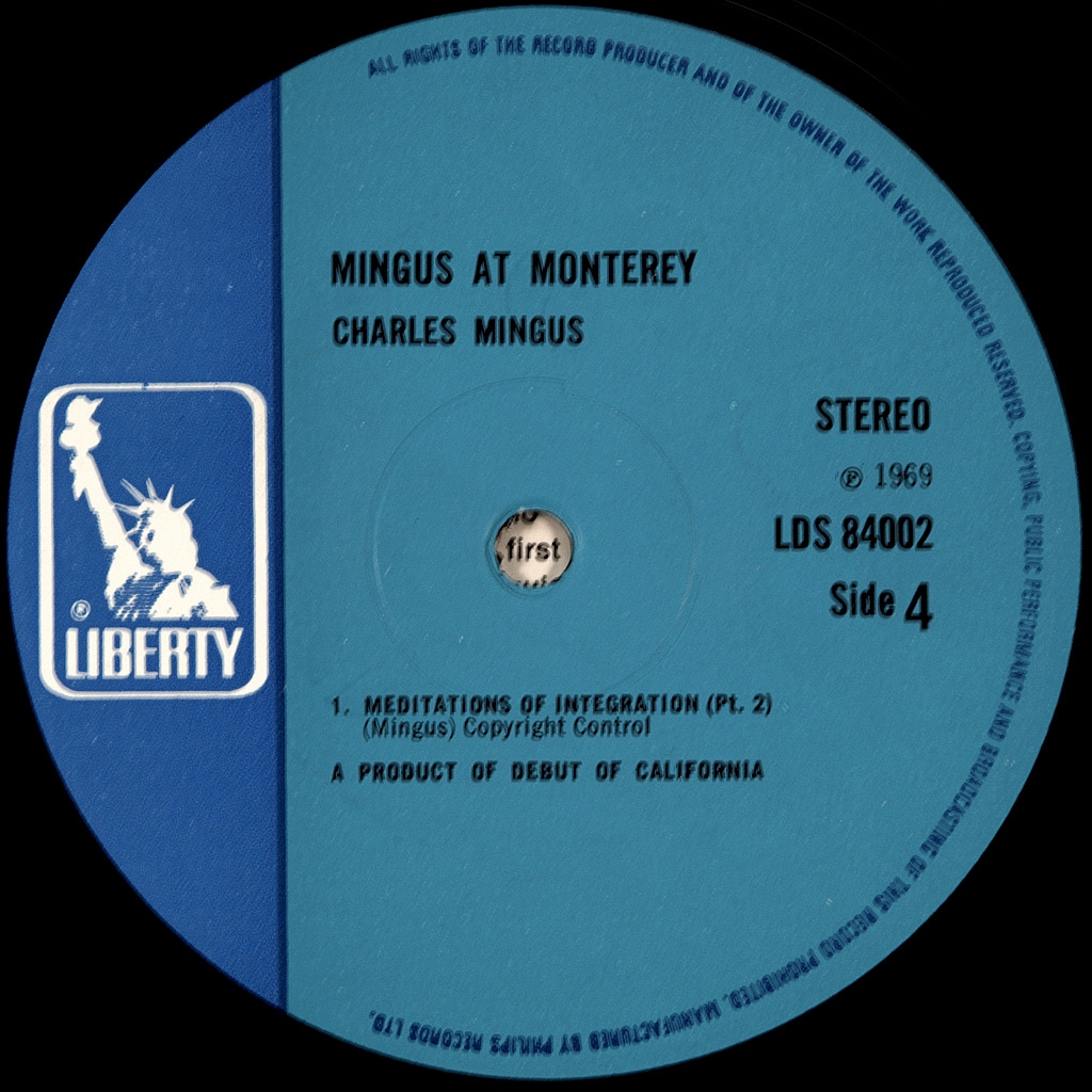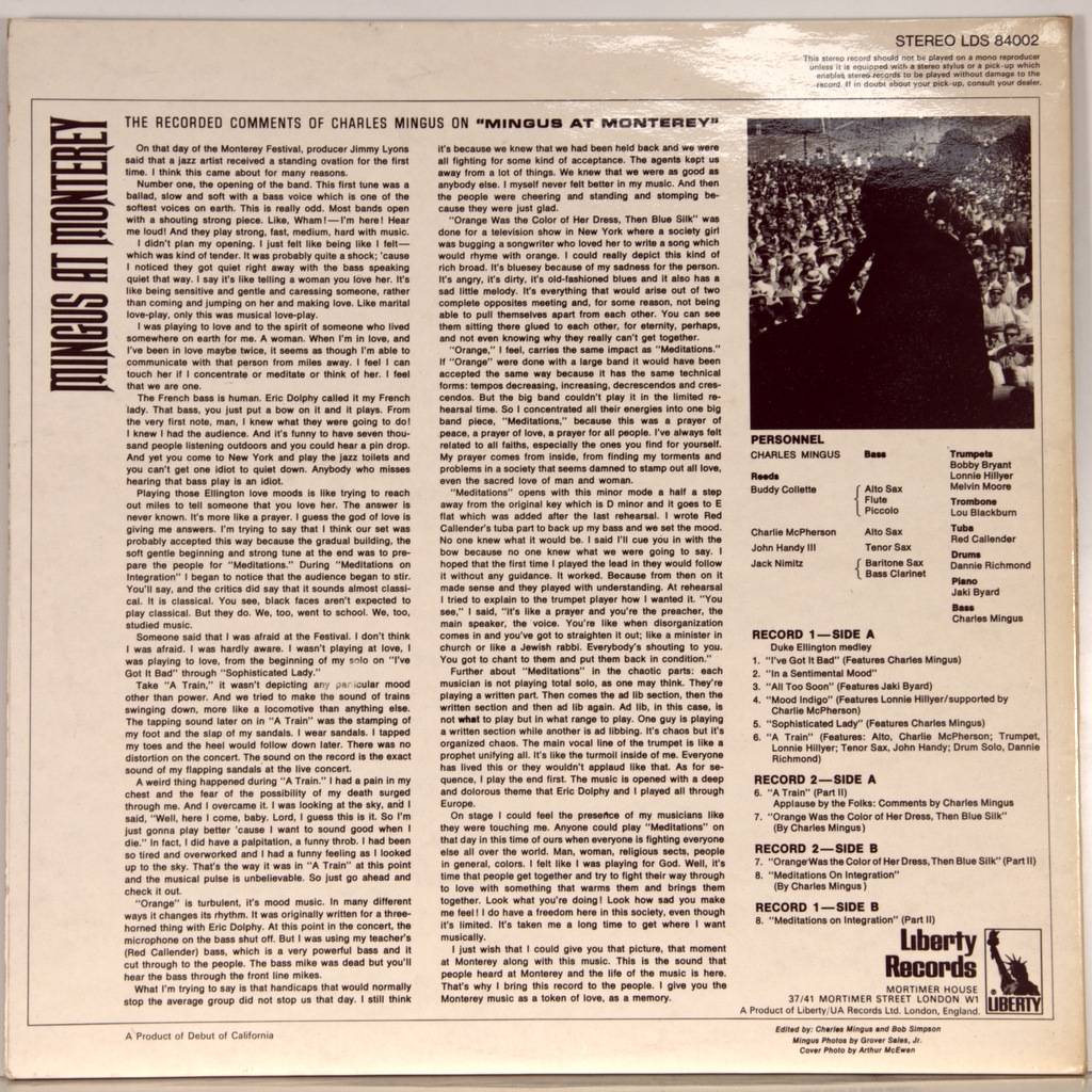 MINGUS, CHARLES-MINGUS AT MONTEREY (2LP'S)-1969-FIRST UK PRESS-LIBERTY number LDS84002 Album by jazz bassist and composer CHARLES MINGUS recorded in 1964 at the jazz festival in Monterey