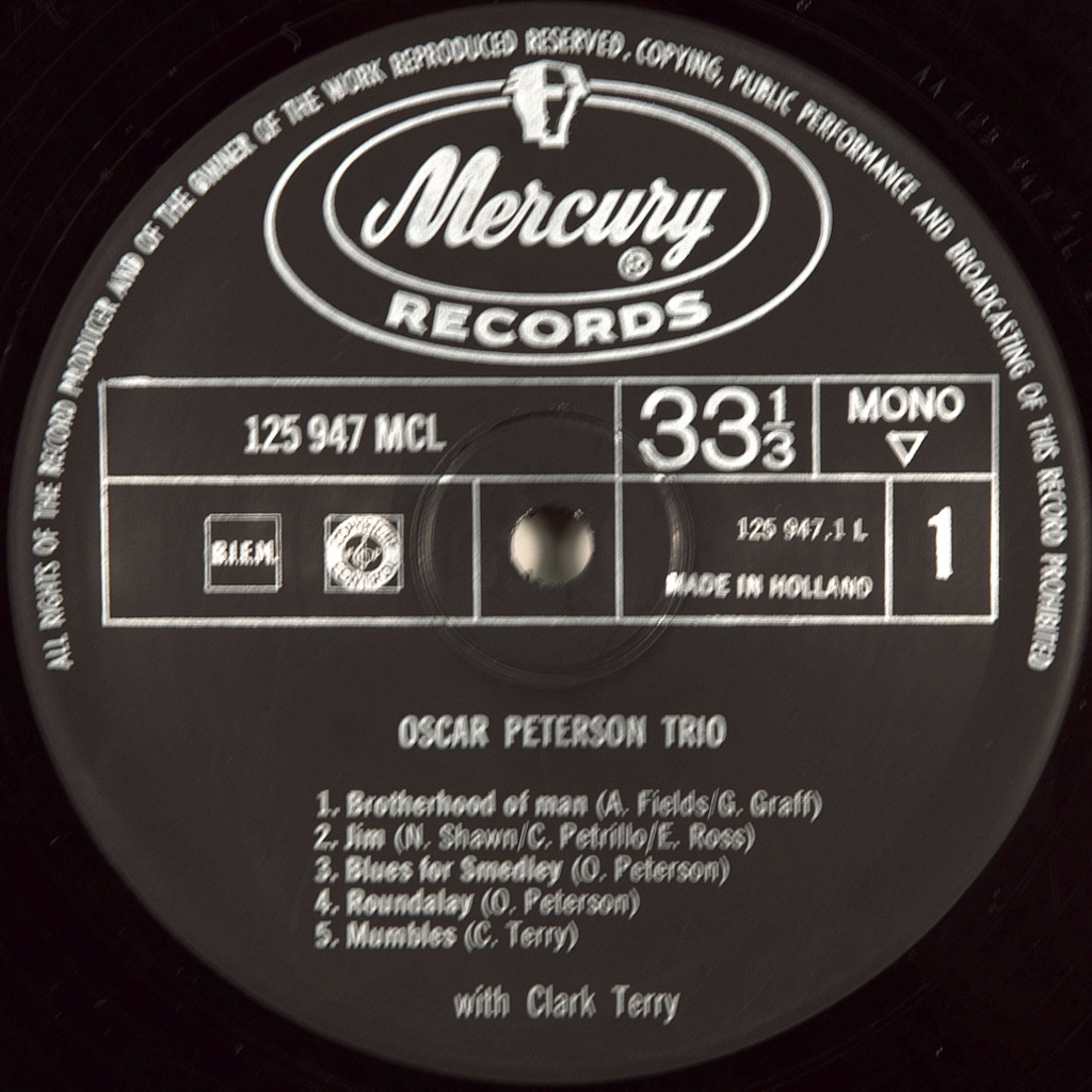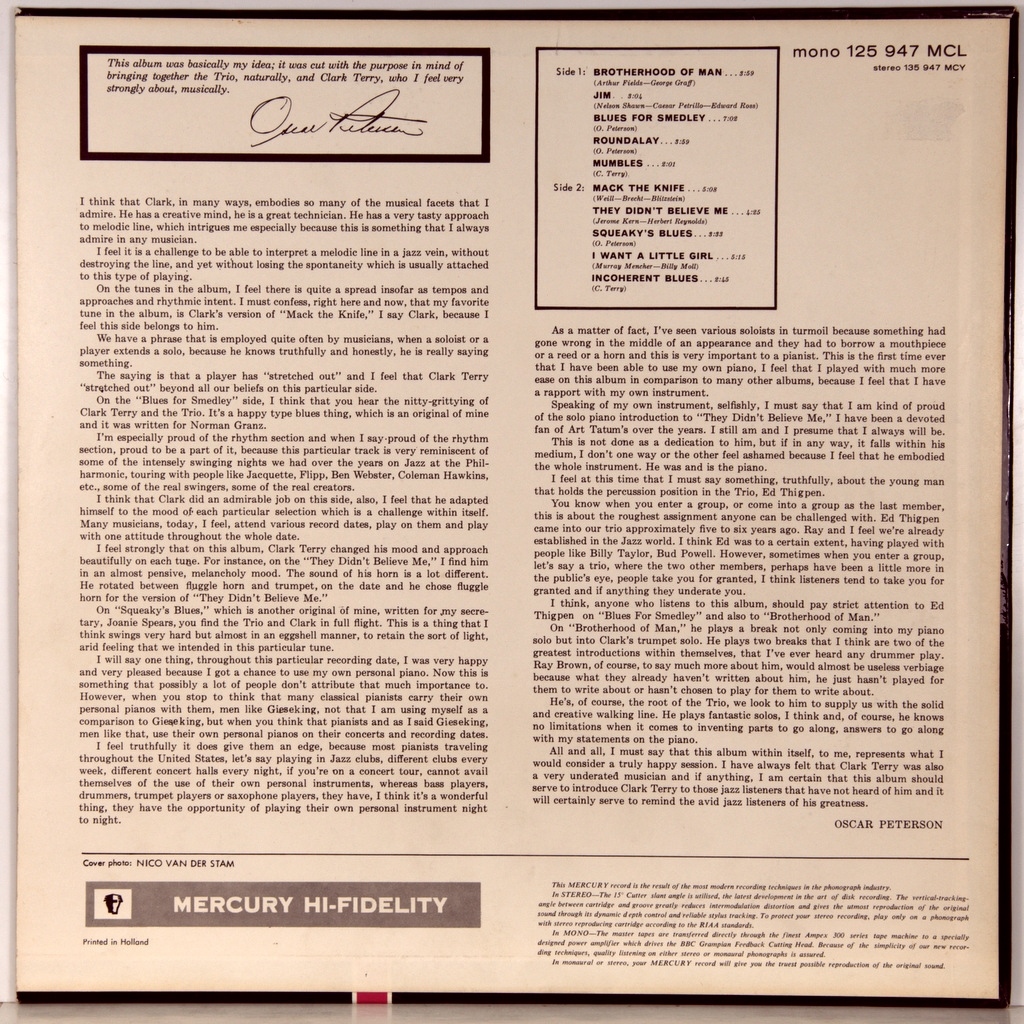 OSCAR PETERSON TRIO WITH CLARK TERRY-THE OSCAR PETERSON TRIO WITH CLARK TERRY (MONO)-1965-FIRST PRESS HOLLAND-MERCURY - number 125947MCL