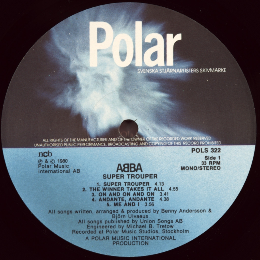 ABBA-SUPER TROUPER-1980-FIRST PRESS SWEDEN-POLAR number POLS322