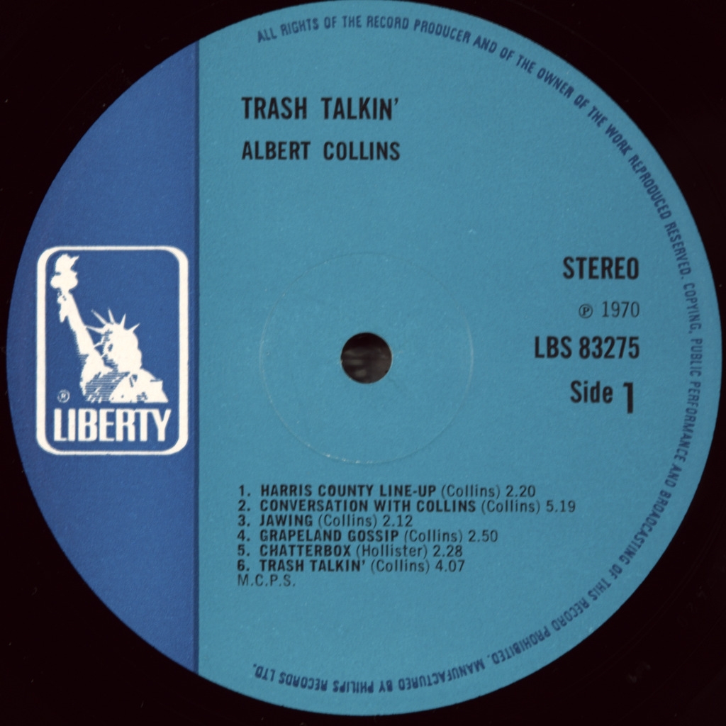 ALBERT COLLINS-TRASH TALKIN-1970-FIRST UK PRESS-LIBERTY number LBS83275.