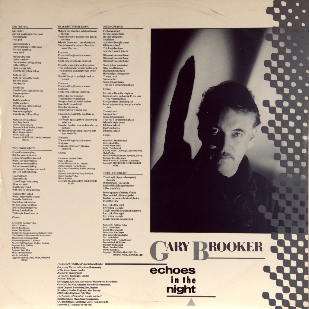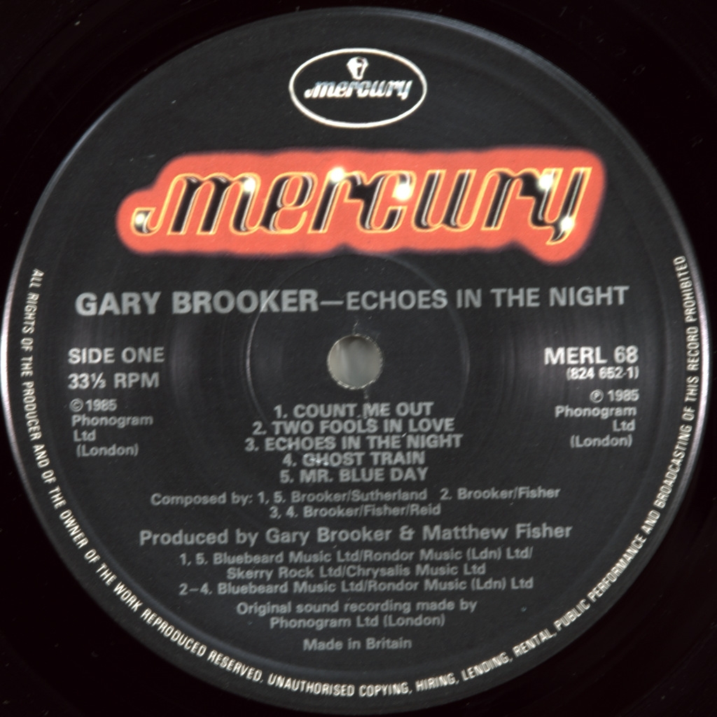 BROOKER, GARY-ECHOES IN THE NIGHT-1985-FIRST UK PRESS-MERCURY number MERL68. Rare solo album from the keyboardist and lead singer of PROCOL HARUM.