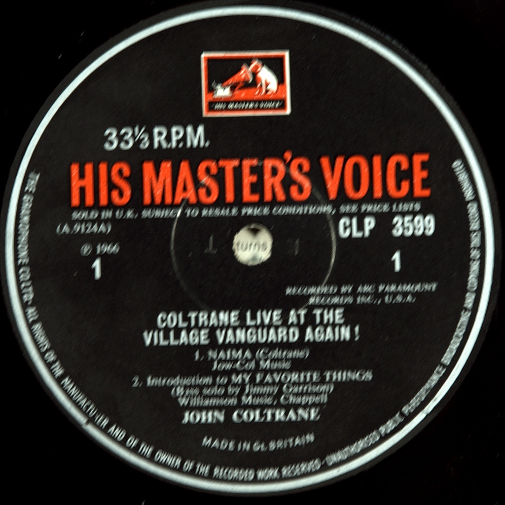 COLTRANE, JOHN-LIVE AT THE VILLAGE VANGUARD AGAIN! (MONO)-1966-FIRST UK PRESS-HIS MASTER VOICE - number CLP3599 Rare album of one of the major jazz musicians of the 20th century.