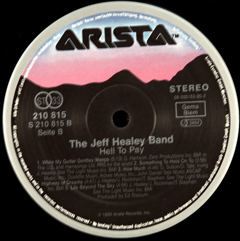 JEFF HEALEY BAND-HELL TO PAY-1990-FIRST GERMANY PRESS-ARISTA number 210815. Rare album of the 90s, unique blazovice.