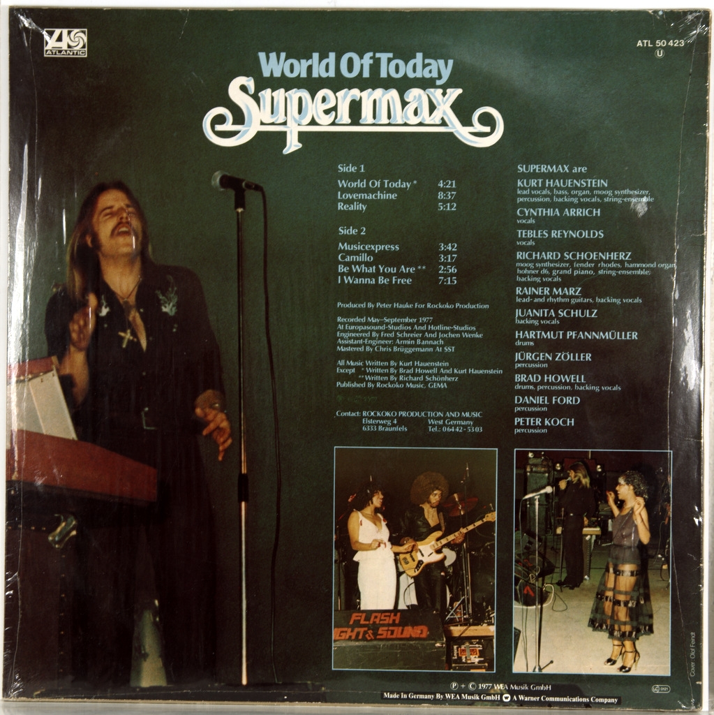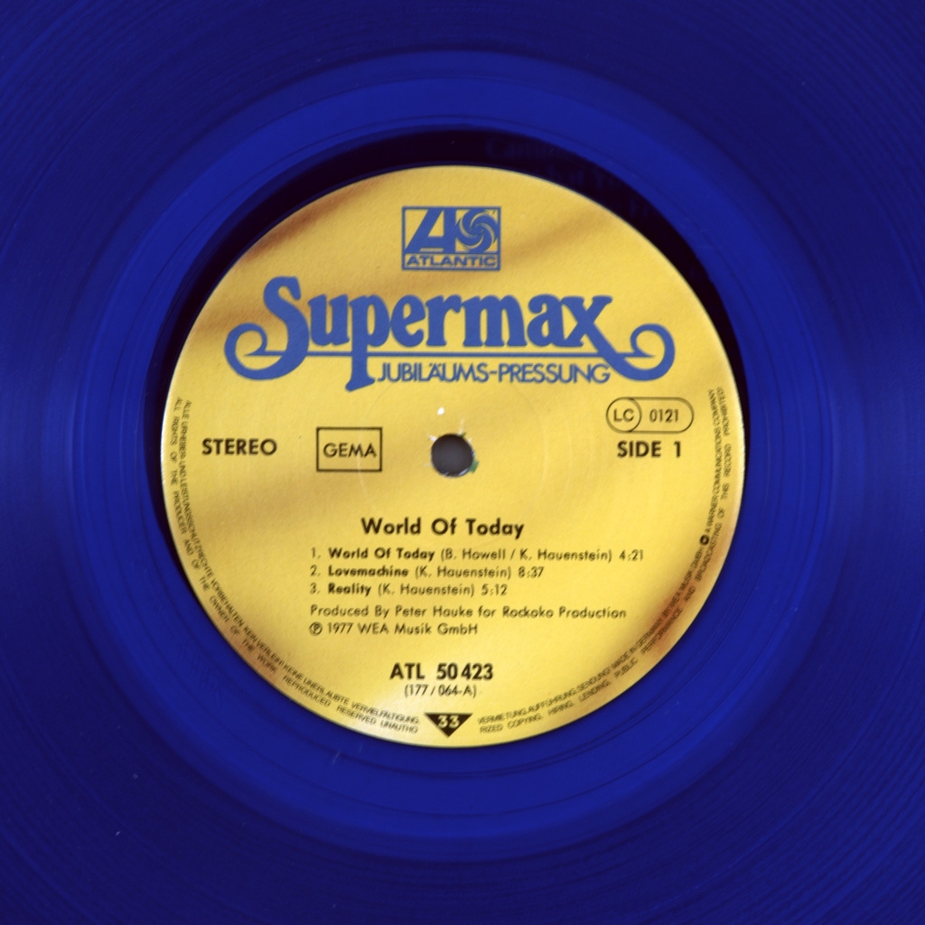SUPERMAX-WORLD OF TODAY(BLUE VINYL)-1977-FIRST GERMANY PRESS-ATLANTIC number ATL50423. Rare original blue vinyl.